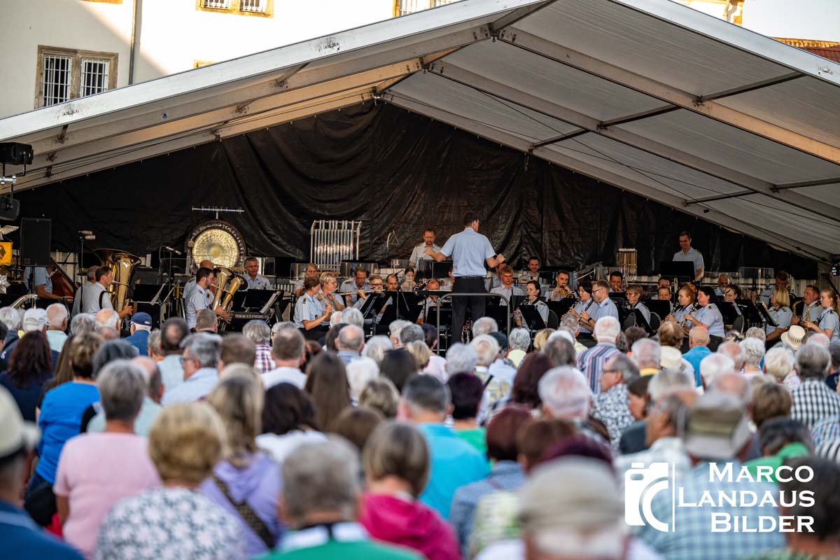 Mit dem „Graf Eberhard-Marsch Albert“ eröffneten die Musiker das Konzert und tauchten den Platz in eine Atmosphäre von feierlicher Erhabenheit. Der „Kaiserwalzer“ entfaltete seine klangliche Pracht, während „Cape Horn“ die Zuhörer auf eine musikalische Reise über stürmische Meere mitnahm. Jede Note schien die Geschichte der Musik lebendig werden zu lassen.