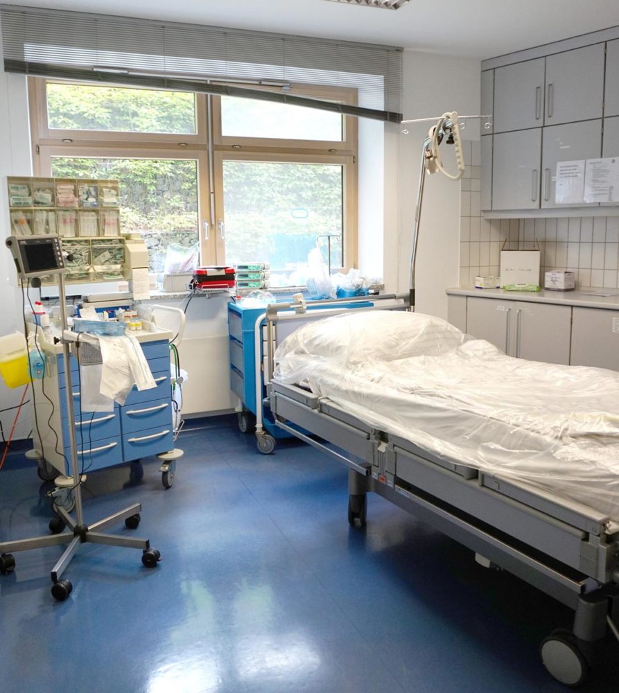 Eva Fehr ist Pflegedienstleiterin im Klinikum. Mit Beginn der sich abzeichnenden Pandemie im Februar diesen Jahres war sie direkt involviert in viele Anpassungs- und Umstrukturierungsprozesse: „Wir haben zunächst im Haus selbst gefragt, wer sich vorstellen könnte, auf der Covid-Station zu arbeiten und waren froh darüber, dass viele Pflegefachkräfte aus den unterschiedlichsten Bereichen sich dazu bereiterklärt haben.“ Natürlich haben auch einige ihre Bedenken geäußert, da sie eine Ansteckung ihrer Eltern im fortgeschrittenen Alter oder auch Risikopatienten im engeren Familienkreis nicht riskieren wollten. „Das haben wir natürlich respektiert“, so Fehr. Die Maßnahme der Regierung, elektive Eingriffe vorerst zu untersagen, um Ressourcen sinnhaft zu bündeln, habe laut Fehr zu diesem Zeitpunkt zur Schaffung freier Kapazitäten in anderen Bereichen beigetragen. Mittlerweile sehe die Situation jedoch anders aus, da sämtliche Operationen wieder durchgeführt werden. „Ein großer Dank meinerseits richtet sich daher sowohl an die Fachkräfte auf der Covid-Station, als auch an diejenigen auf den anderen Stationen, welche die Abwesenheit ihrer Kollegen nun zeitweise kompensieren müssen.“ Die neue Covid-Station verfügt über mehrere speziell eingerichtete Zimmer, in der laut Verordnung des Robert-Koch-Instituts jeweils drei Patienten gemeinsam versorgt werden könnten. „Zusammen betreuen könnte man bestätige Fälle mit ähnlicher Symptomatik“, ergänzt Fehr. Wie lange diese Station in ihrer jetzigen Form bestehen bleibt, entscheide ganz alleine das Geschehen in Deutschland, vor allem eben im Landkreis Hersfeld-Rotenburg.