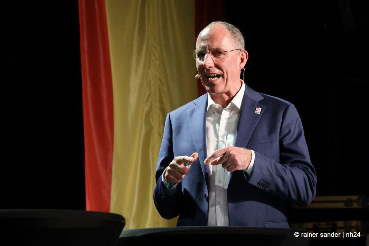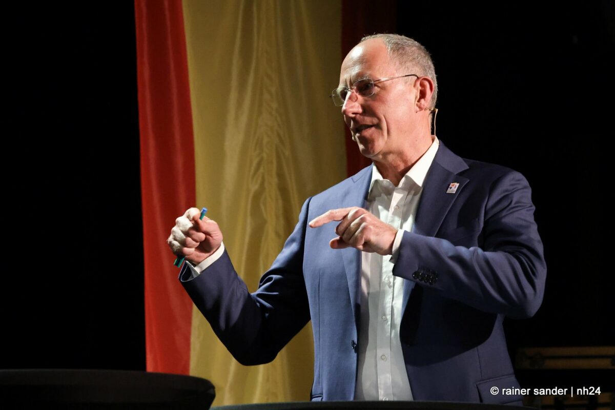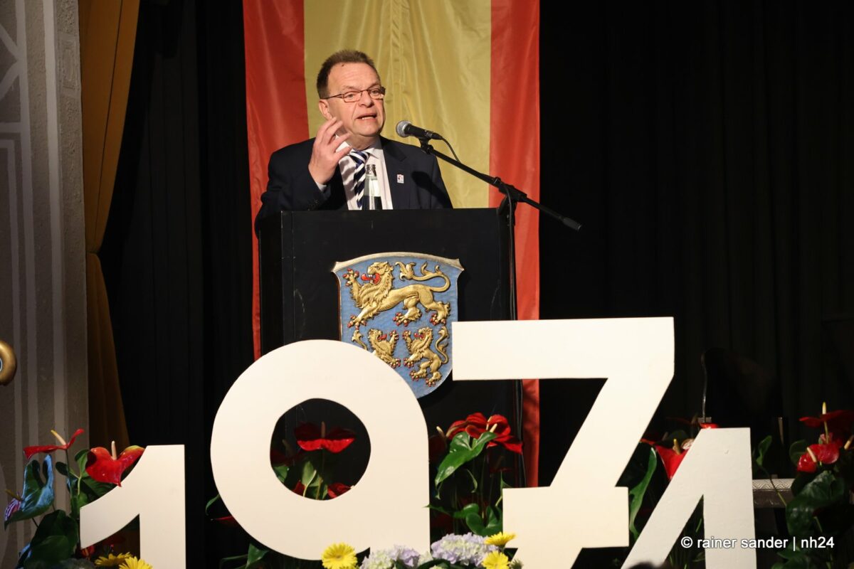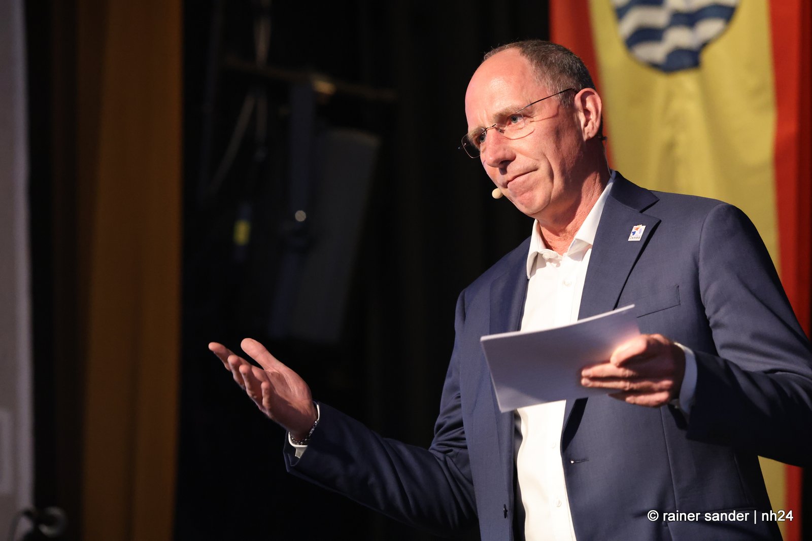 Die Prognosen für den Kreis haben einmal einen Bevölkerungsrückgang von 20-30 Prozent prophezeit. Das ist so nicht gekommen. Man könne sein Schicksal also in die eigene Hand nehmen. An eine Region zu glauben bedeute, eine Zukunft zu sehen. Wenn man auf dem Heiligenberg ins Edertal schaut, vom Knüllköpfchen die Landschaft genießt oder auf der Kapelle Schönberg den Sonnenuntergang erlebt, wisse, es gibt nichts Schöneres. Der Satz, „es lohnt sich in diesem Kreis und in dieser Gesellschaft zu leben“ erinnerten an Worte seines Amtsvorgängers Walter Lübcke in der Lohfeldener-Rede. Für Landrat Becker ein trauriges Kapitel und Grund genug, gemeinsam gegen Tendenzen nach Rechts einzutreten.