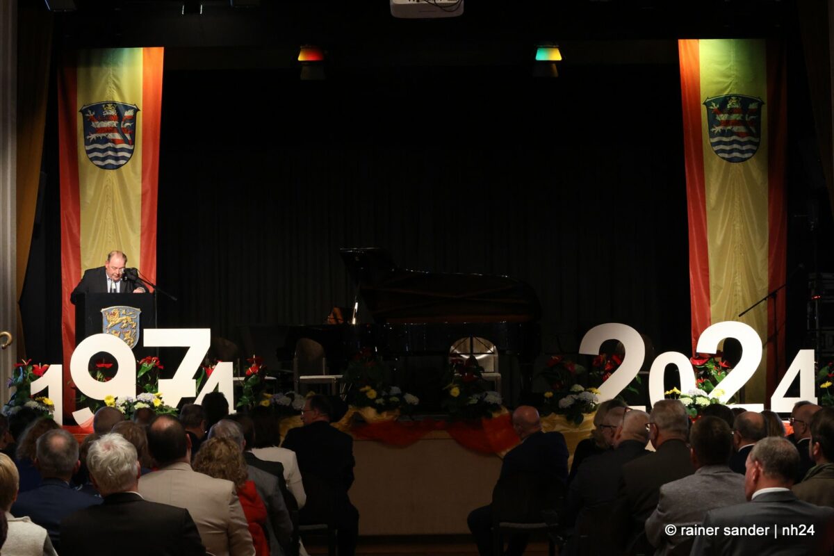 Heute liegt der Landkreis mitten in Deutschland und mitten in Europa, hat, wie Winfried Becker feststellte, eine der niedrigsten Arbeitslosenquoten in Hessen mit 4,6 Prozent. Dass hier nichts mehr gefördert werden muss, konnte bei der Gründung des Kreises genauso wenig jemand wissen, wie man sich vorstellen konnte, dass es einmal eine Partnerstadt Pila in Polen geben wird. Aber auch nicht, dass heute ein Krieg in Europa abermals die Menschen belastet. „Auch ich“, so Weinmeister, „dachte nach dem Fall des Eisernen Vorhangs, jetzt herrscht ewiger Frieden. Ein Ende der Geschichte wird es nie geben!“