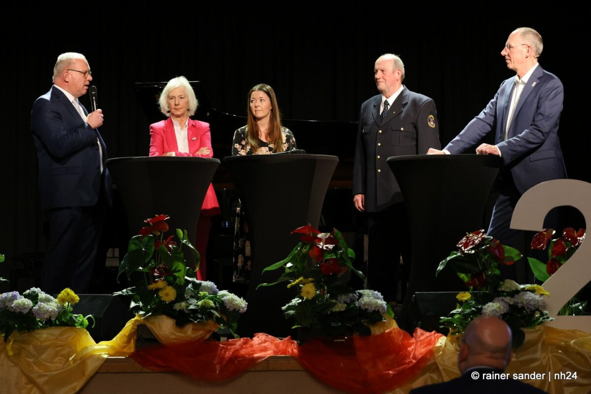 In zwei Talk-Runden mit Handwerkskammer-Präsident Frank Dittmar und Bürgermeister Dr. Nico Ritz sowie Freifrau Donata Schenck zu Schweinsberg, Werner Bär und Lea Lange ging es um Wirtschaft und Ehrenamt. Handwerkskammer-Präsident Dittmar erntete Beifall für die Forderung nach Fächern wie „Werken“ und eine Abkehr von der Akademisierung in der Schulausbildung. Die frühere DRK-Vizepräsidentin Schenck zu Schweinsberg nannte als größte Herausforderung diejenigen, die zu uns kommen, zu integrieren und diejenigen, die nicht so denken, wie wir es mögen, zu überzeugen. Werner Bär, ehemaliger Kreisbrandinspektor, rechnete vor, dass jede Einsatzabteilung einer Kreis-Kommune 2,5 Millionen € jährlich spart, die für eine Berufsfeuerwehr fällig würden. Es gibt also auch im 51. Jahr des Landkreises viel zu tun, um die Zukunft positiv zu gestalten. (rs)