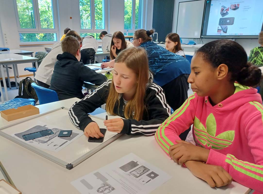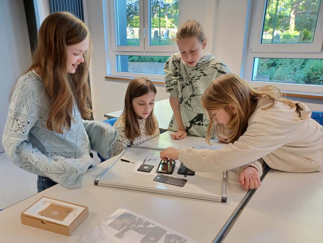 Ein weiterer Schwerpunkt liegt beim Thema Smartphone. Mit Unterstützung der Firma Shiftphone aus Falkenberg konnten die Kinder Geräte auseinandernehmen und deren Bauteile untersuchen. Dabei erfuhren sie, woher die einzelnen Komponenten stammen, welche Arbeitsbedingungen in den Produktionsländern herrschen und was mit defekten Geräten geschieht.
