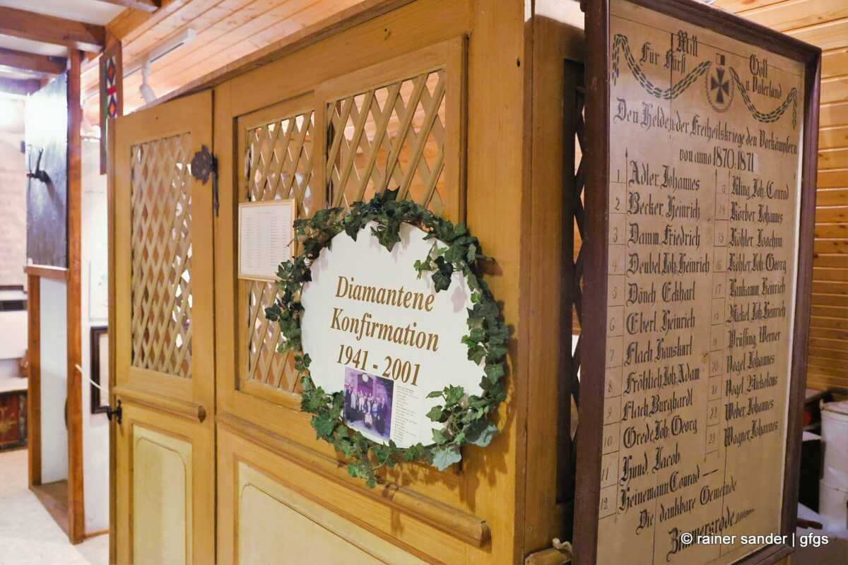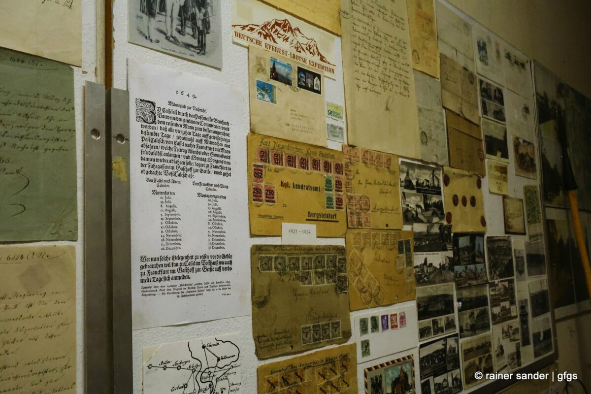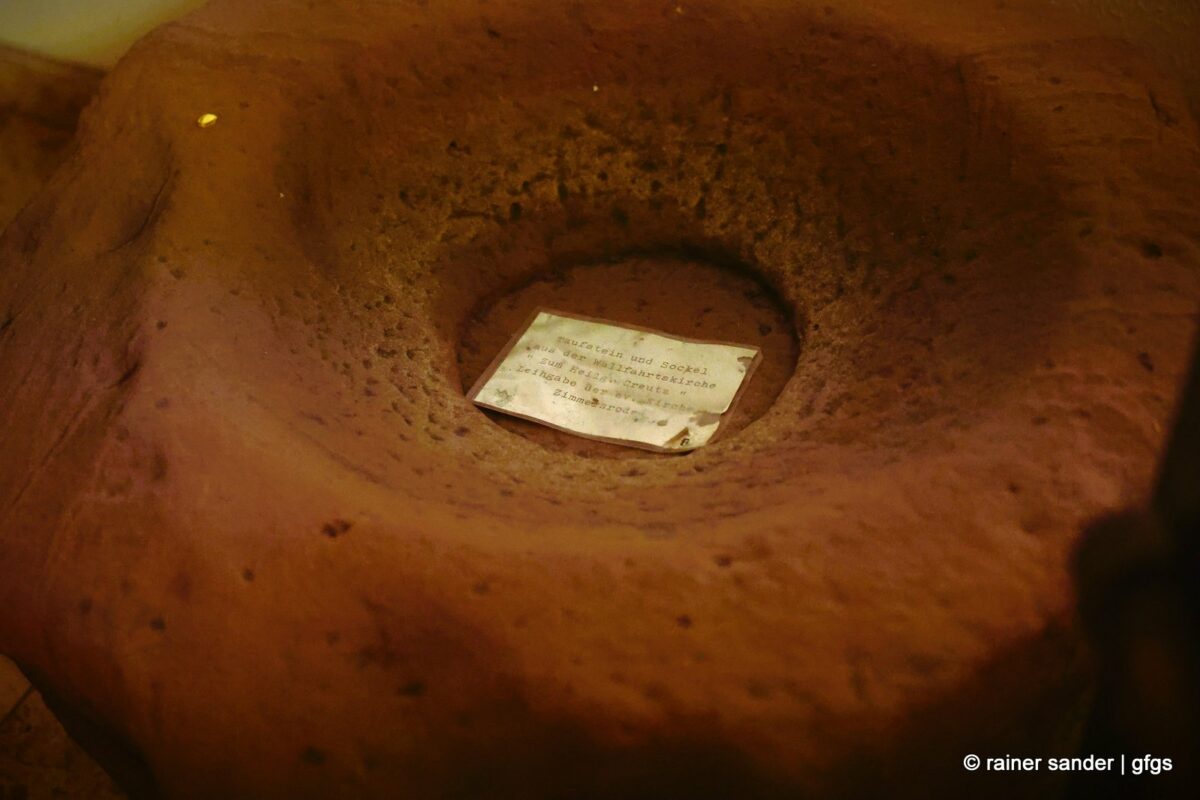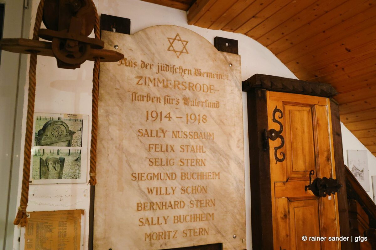 Nicht nur Einheimische waren von Zimmersrode angetan. Eine Wallfahrtskirche war hier einst Ziel von Wallfahrern. Im Eingangsbereich des Museums liegt ein altes Taufbecken. Daneben eine ganz offensichtlich sehr alte Sandsteintafel mit spannenden Abbildungen. Sie ist älter als ursprünglich angenommen. Wie alt, das konnte noch nicht ermittelt werden. Eine Kirchturmuhr aus der jüngeren Geschichte kann im Museum in voller Schönheit und Größe bewundert werden. Beeindruckend ist eine Sammlung alter Dokumente und Zeichnungen. Wer sich einen Moment Zeit nimmt, kann viele Stationen der Dorfgeschichte nacherleben, und auch Erinnerungen an eine jüdische Gemeinde im Ort bleiben für die Nachwelt erhalten.