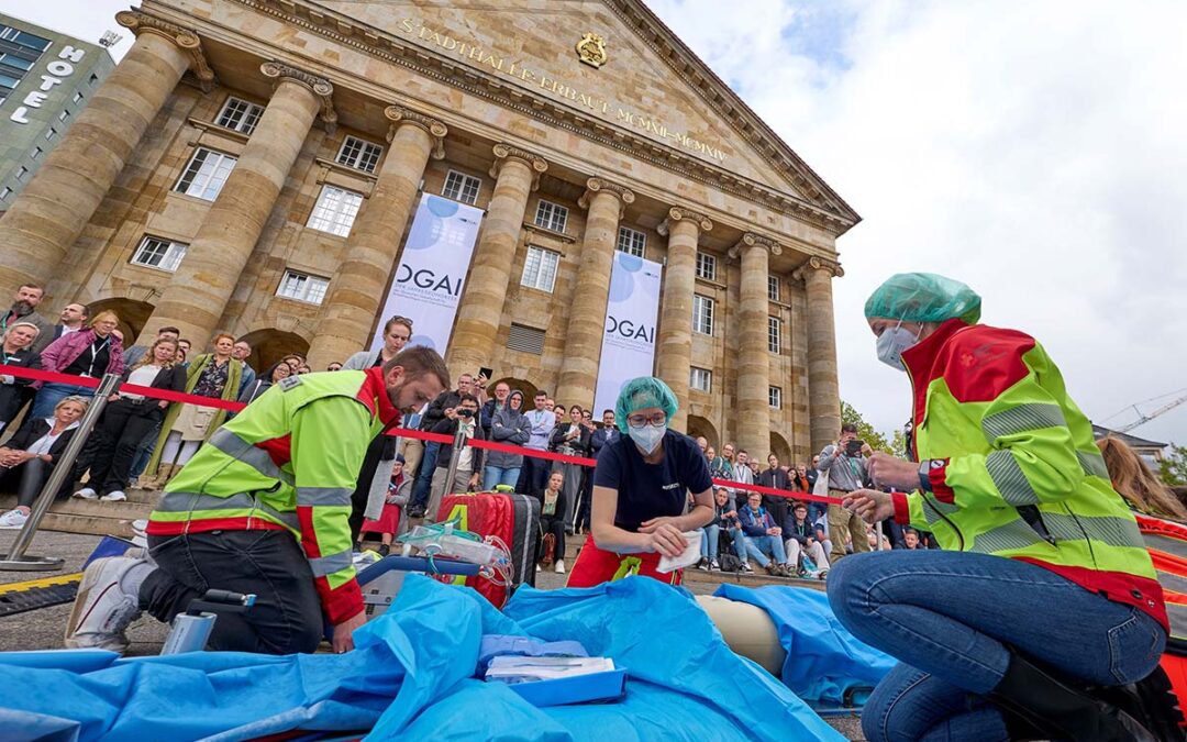 Im vergangenen Jahr übten Rettungskräfte im Rahmen des DGAI-Jahreskongresses die Reanimation einer verunglückten Person vor dem Kongress Palais Kassel. (wal)