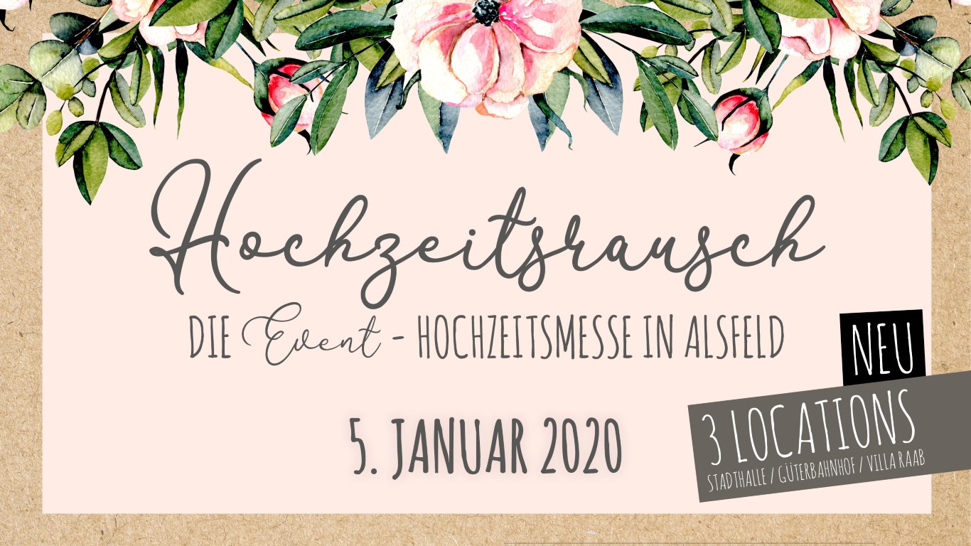 ALSFELD. Eine Stadt vollkommen im Hochzeitsrausch. Das jedenfalls wird am Sonntag, 5. Januar 2020, der Fall sein, wenn in Alsfeld alles für den wohl schönsten Tag im Leben zweier Liebenden geboten wird. Richtig gehört: In diesem Jahr verwandelt sich nicht nur die Alsfelder Stadthalle zur Hochzeitsmesselocation, sondern mit ihr gleich auch noch der Güterbahnhof und die Villa Raab.