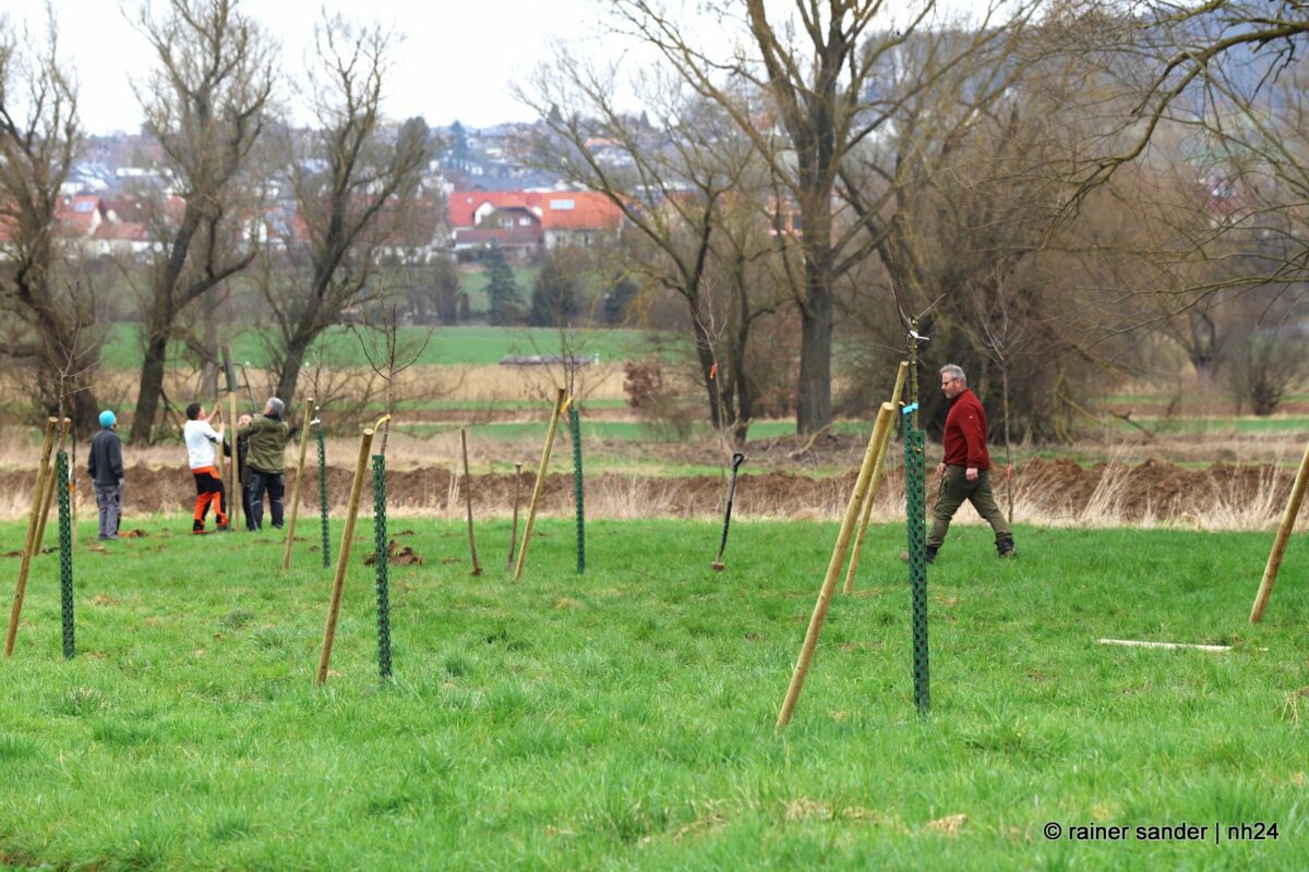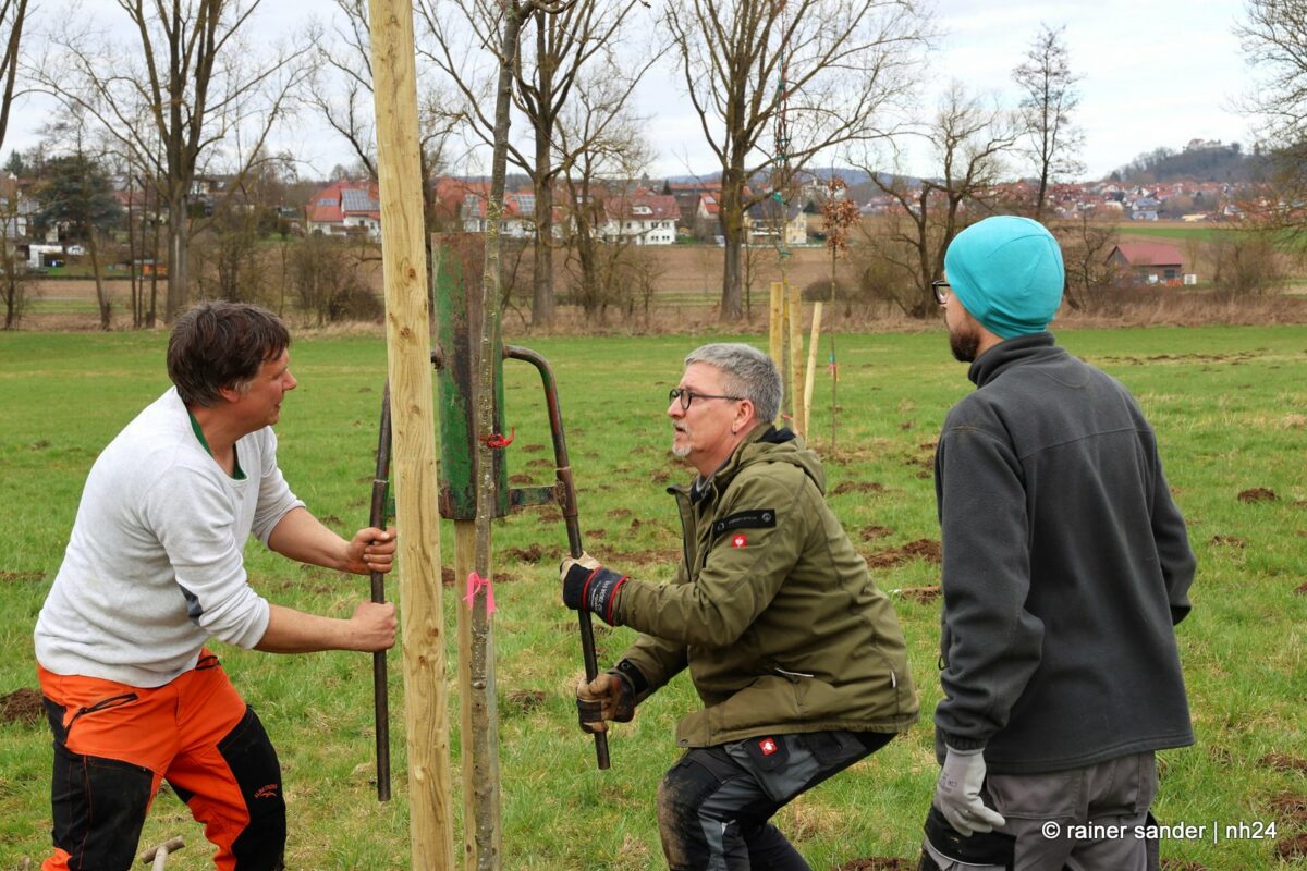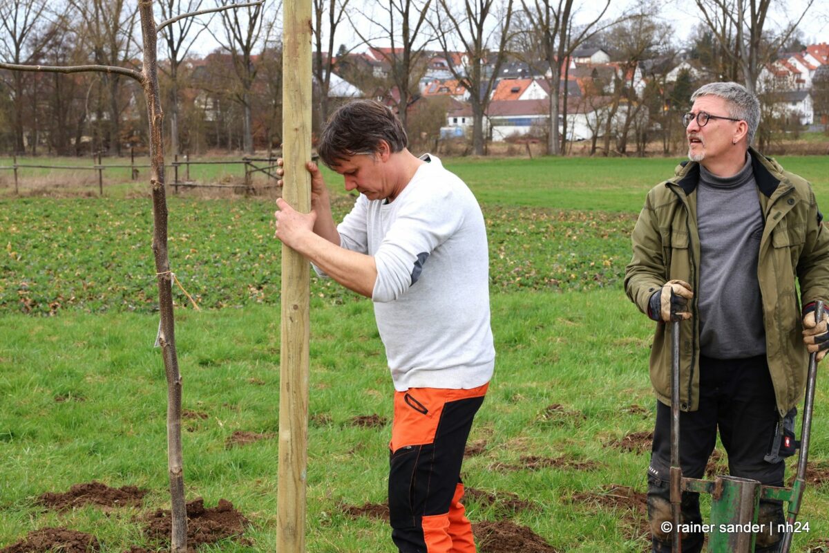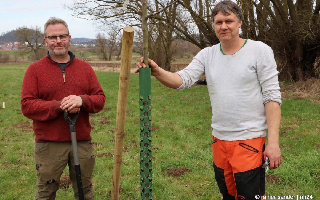 Sven Böhm und Karsten Menzel haben die NABU-Gruppe Chattengau wieder mobilisiert. Sie wollen in der ganzen Region aktiv werden. Bereits 130 Mitglieder hat die Ortsgruppe. Etwa 20 von ihnen waren beim Pflanzen 27 neun Bäume beteiligt, haben Löcher gegraben, Bäume gesetzt, Pfähle eingeschlagen. Mit Aktionen wie dieser, möchte die Gruppe weitere Mitglieder werben. Die Kontaktdaten für interessierte gibt es auf der Internetseite des NABU.