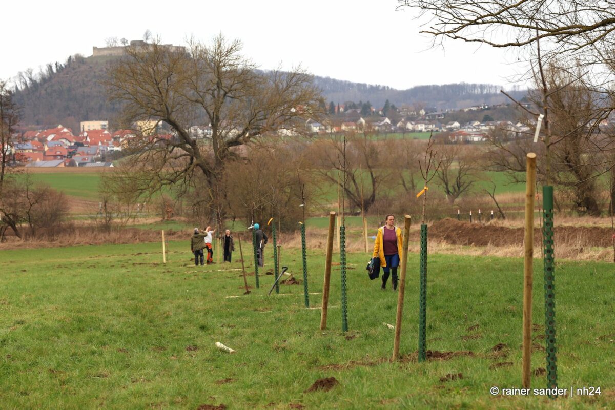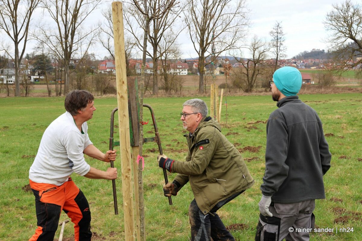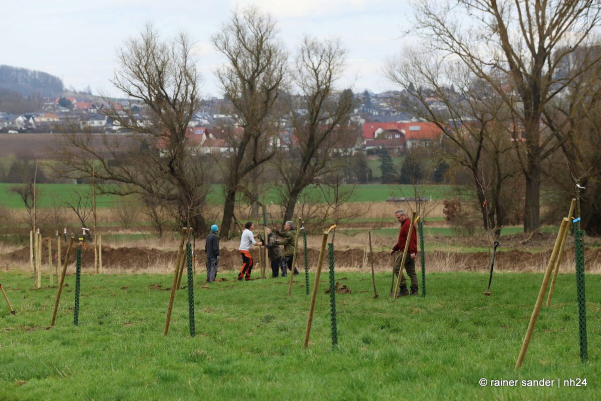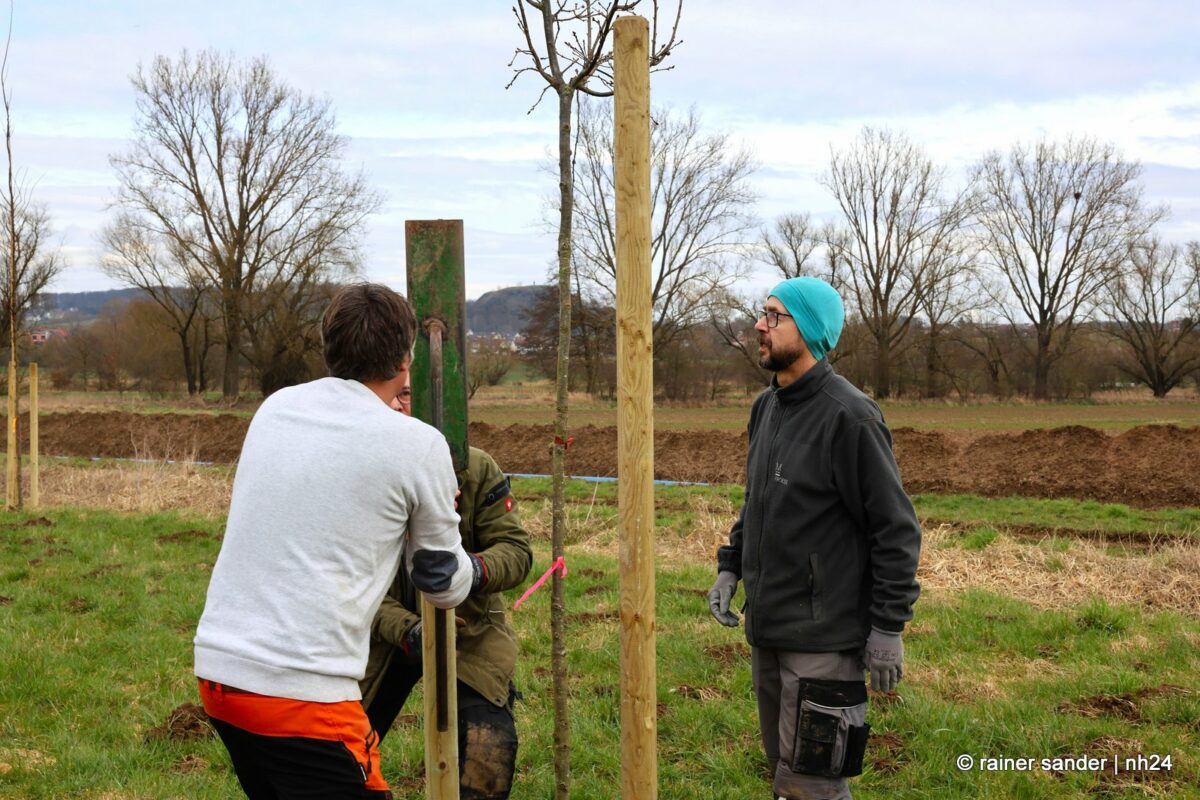 Sven Böhm und Karsten Menzel haben die NABU-Gruppe Chattengau wieder mobilisiert. Sie wollen in der ganzen Region aktiv werden. Bereits 130 Mitglieder hat die Ortsgruppe. Etwa 20 von ihnen waren beim Pflanzen 27 neun Bäume beteiligt, haben Löcher gegraben, Bäume gesetzt, Pfähle eingeschlagen. Mit Aktionen wie dieser, möchte die Gruppe weitere Mitglieder werben. Die Kontaktdaten für interessierte gibt es auf der Internetseite des NABU.