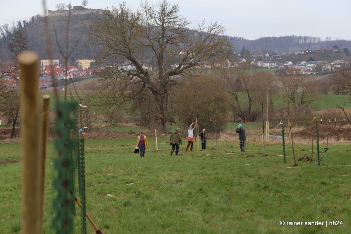 Familie Menzel gehört auch das Grundstück, das Frau Menzel kostenfrei zur Verfügung gestellt hat. Die Fläche bleibt frei zugänglich und dient den Obervorschützern sowie Gudensbergern in Zukunft als ein Naherholungsgebiet, in dem man sich auch mal einen Apfel oder eine Handvoll Kirschen holen darf. Das wird sogar gerne gesehen, denn es wäre schade, wenn das Obst nicht genutzt wird. Schließlich ist die neue Streuobstwiese auch ein angenehmes Plätzchen an der Ems mit Blick auf die Obernburg. Die Gruppe freu sich, dass die Stadt Gudensberg sehr auf Nachhaltigkeit achtet und solche Aktionen unterstützt. (rs)