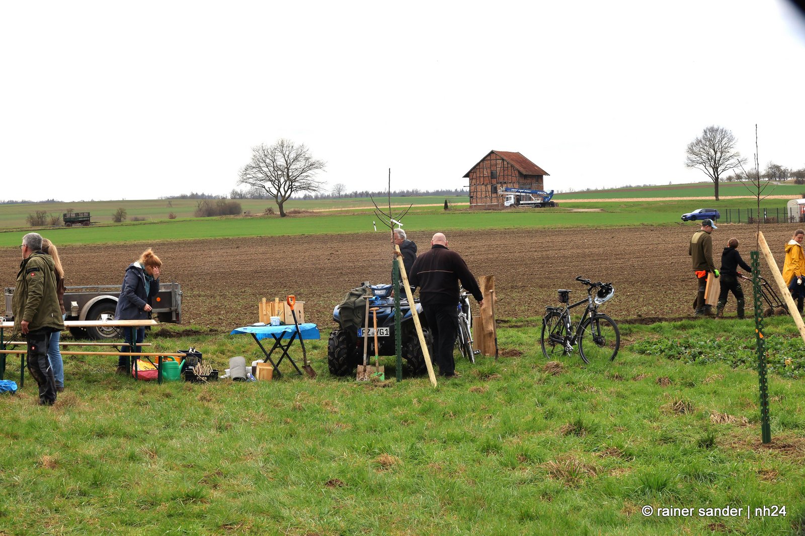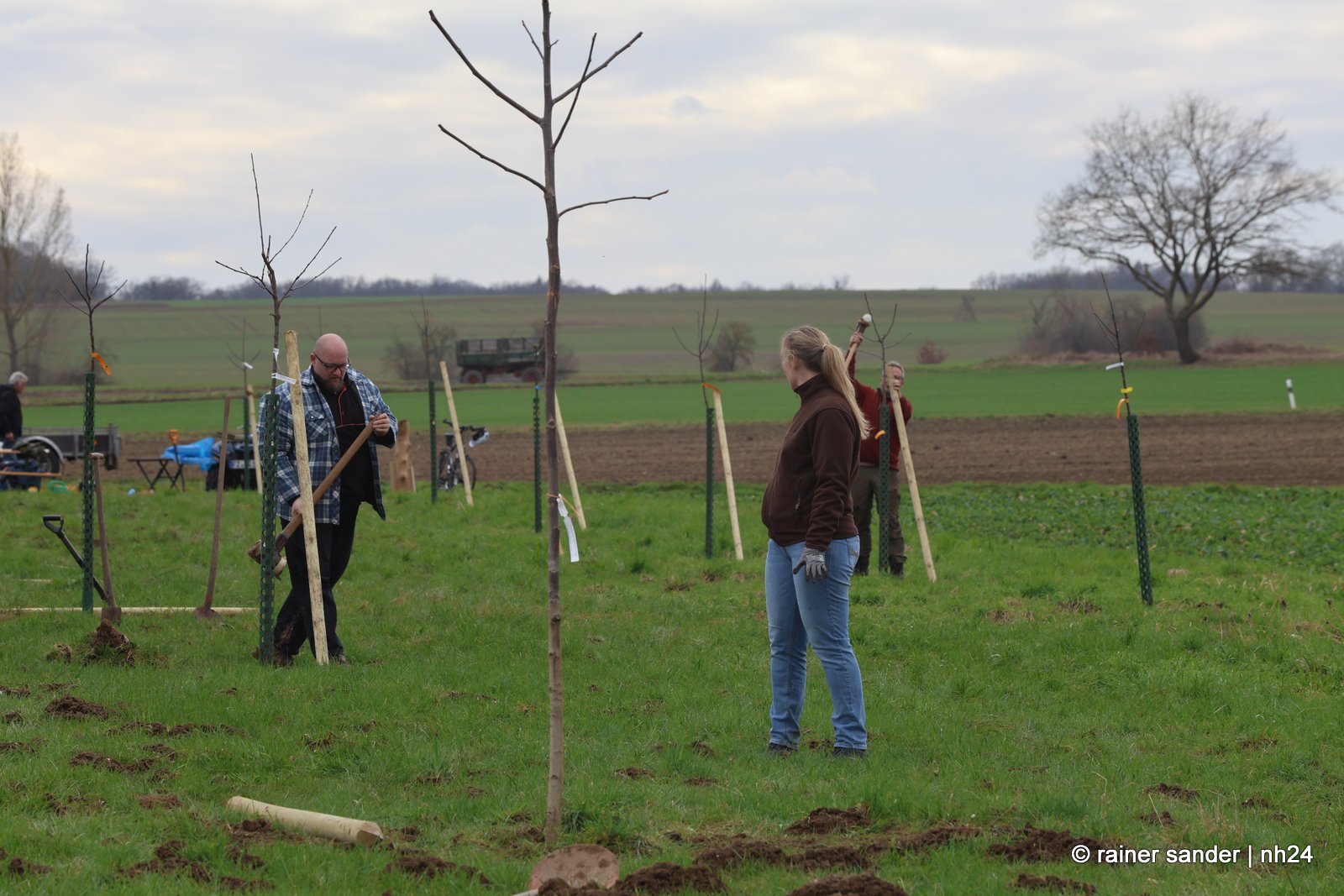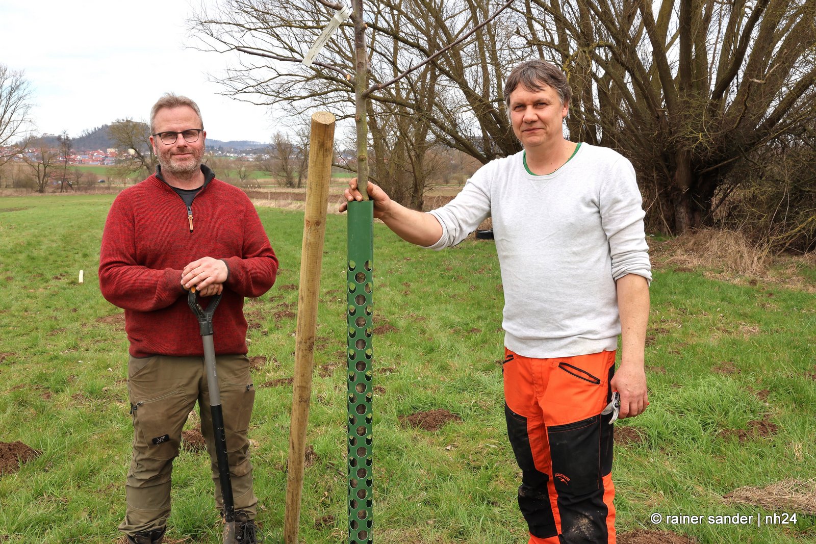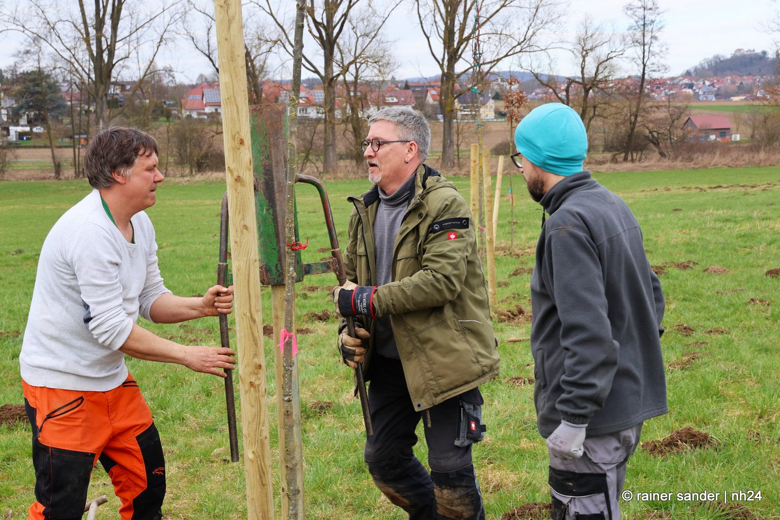 Sven Böhm und Karsten Menzel haben die NABU-Gruppe Chattengau wieder mobilisiert. Sie wollen in der ganzen Region aktiv werden. Bereits 130 Mitglieder hat die Ortsgruppe. Etwa 20 von ihnen waren beim Pflanzen 27 neun Bäume beteiligt, haben Löcher gegraben, Bäume gesetzt, Pfähle eingeschlagen. Mit Aktionen wie dieser, möchte die Gruppe weitere Mitglieder werben. Die Kontaktdaten für interessierte gibt es auf der Internetseite des NABU.