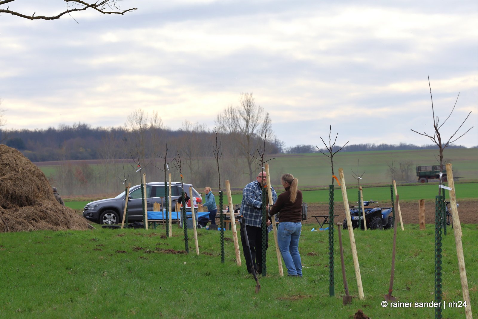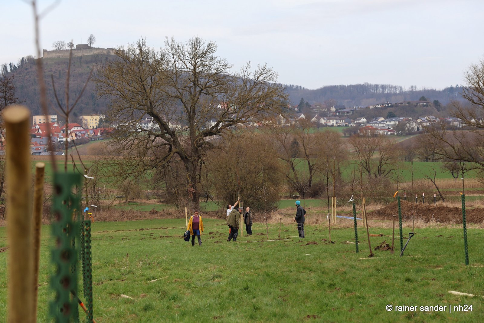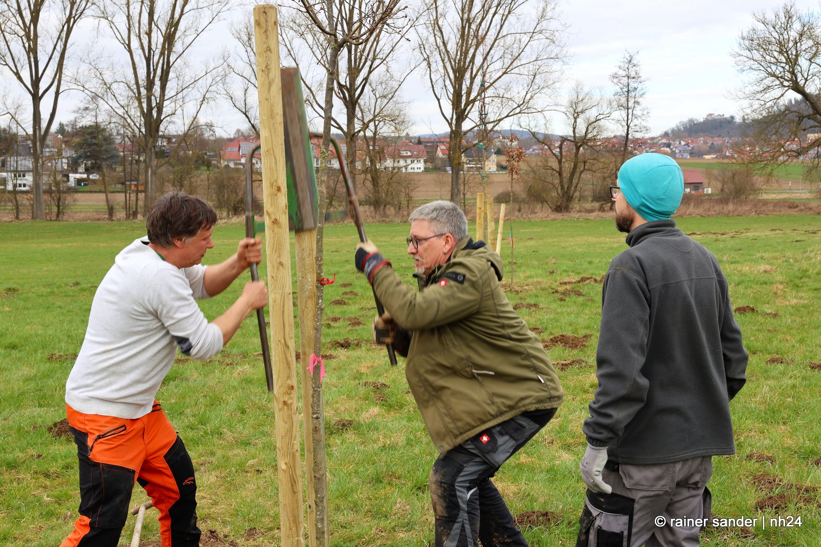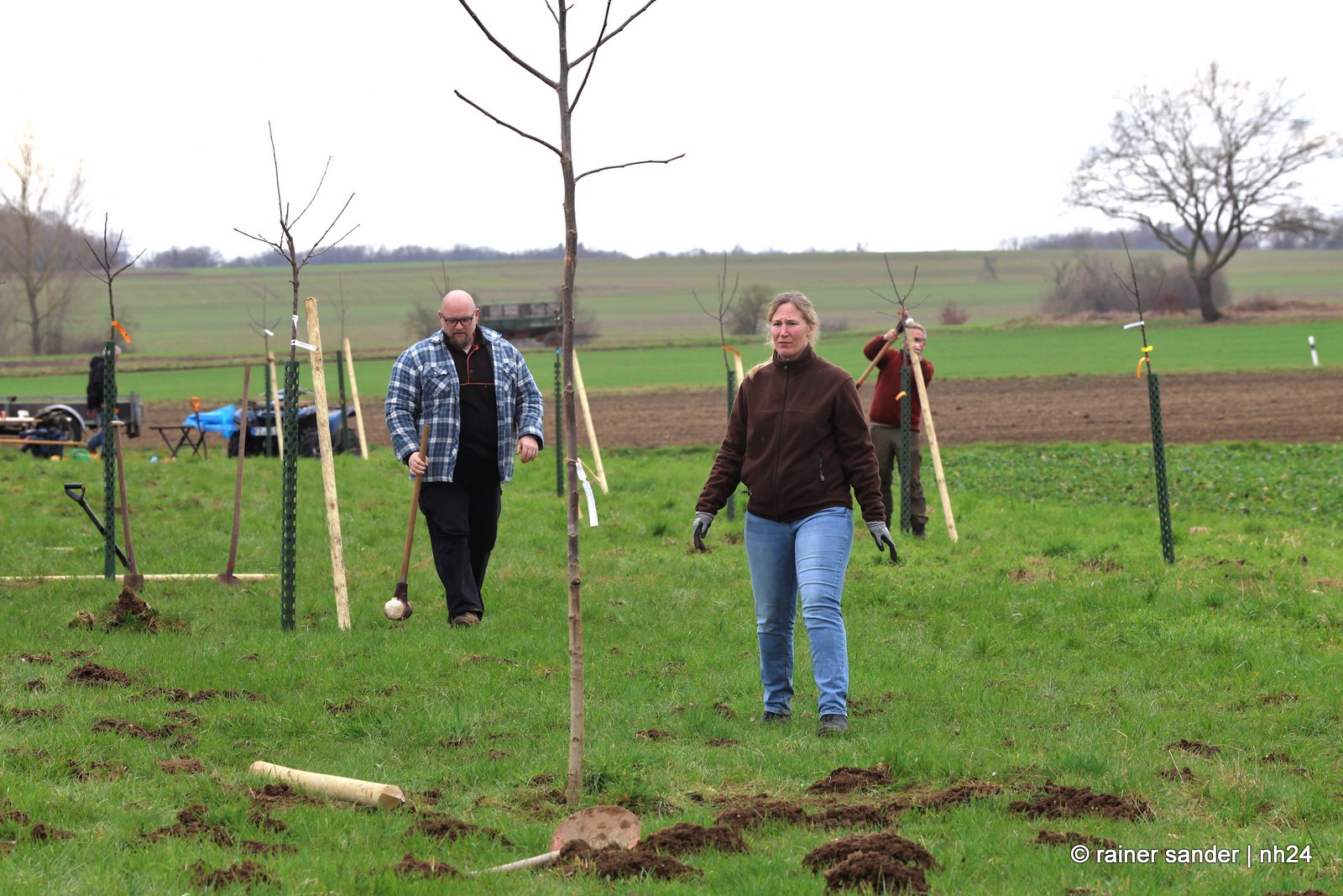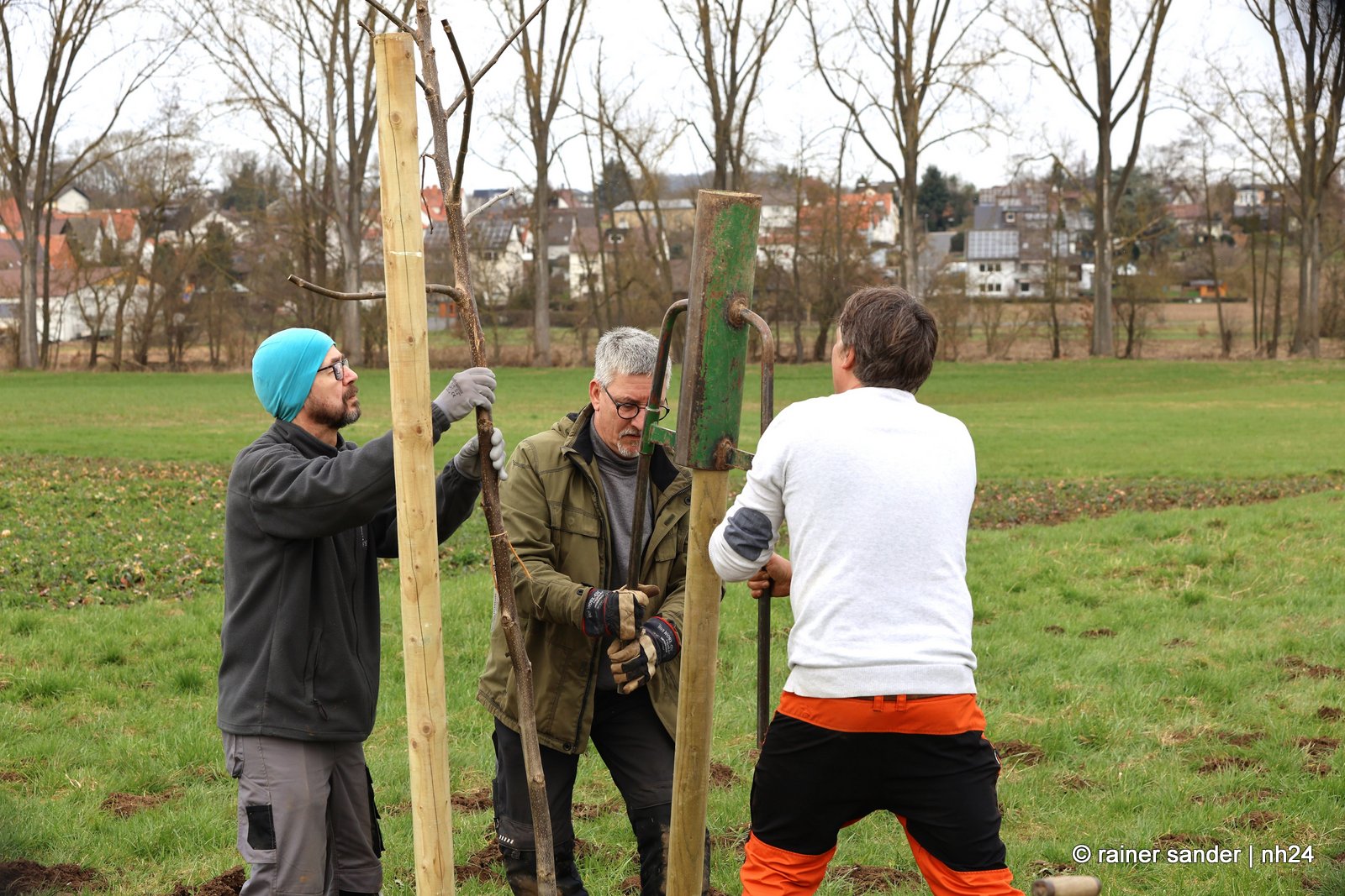 Sven Böhm und Karsten Menzel haben die NABU-Gruppe Chattengau wieder mobilisiert. Sie wollen in der ganzen Region aktiv werden. Bereits 130 Mitglieder hat die Ortsgruppe. Etwa 20 von ihnen waren beim Pflanzen 27 neun Bäume beteiligt, haben Löcher gegraben, Bäume gesetzt, Pfähle eingeschlagen. Mit Aktionen wie dieser, möchte die Gruppe weitere Mitglieder werben. Die Kontaktdaten für interessierte gibt es auf der Internetseite des NABU.