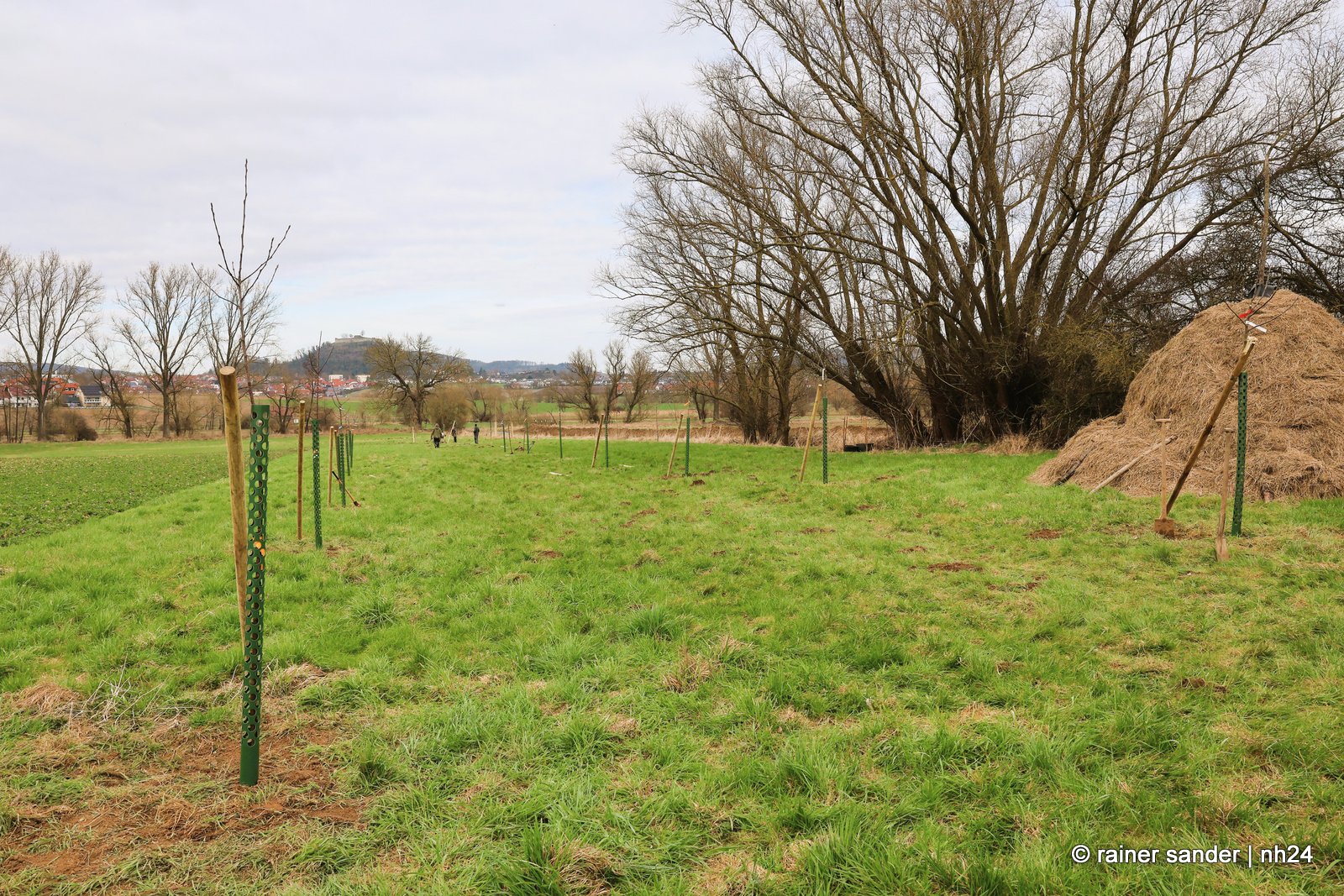 Familie Menzel gehört auch das Grundstück, das Frau Menzel kostenfrei zur Verfügung gestellt hat. Die Fläche bleibt frei zugänglich und dient den Obervorschützern sowie Gudensbergern in Zukunft als ein Naherholungsgebiet, in dem man sich auch mal einen Apfel oder eine Handvoll Kirschen holen darf. Das wird sogar gerne gesehen, denn es wäre schade, wenn das Obst nicht genutzt wird. Schließlich ist die neue Streuobstwiese auch ein angenehmes Plätzchen an der Ems mit Blick auf die Obernburg. Die Gruppe freu sich, dass die Stadt Gudensberg sehr auf Nachhaltigkeit achtet und solche Aktionen unterstützt. (rs)