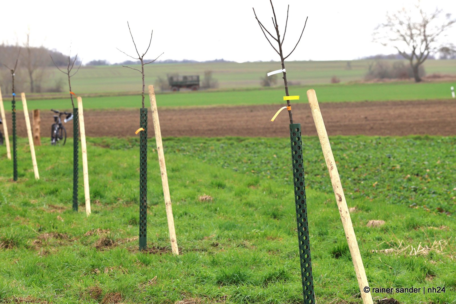 Zwei regionale Sorten, die einst in Nordhessen verbreitet waren, nämlich die eingangs genannten, gehören dazu. Dazu kommen Laubbäume, wie die Winterlinde und die Flatterulme. Auch sie wachsen hochstämmig. Im Herbst soll noch ein Feldholzinsel folgen, in der ausschließlich einheimische Wildgehölze angepflanzt werden. Vorgesehen sind Wildrosen, Weißdorn, Schwarzdorn und Wildkirschen.
