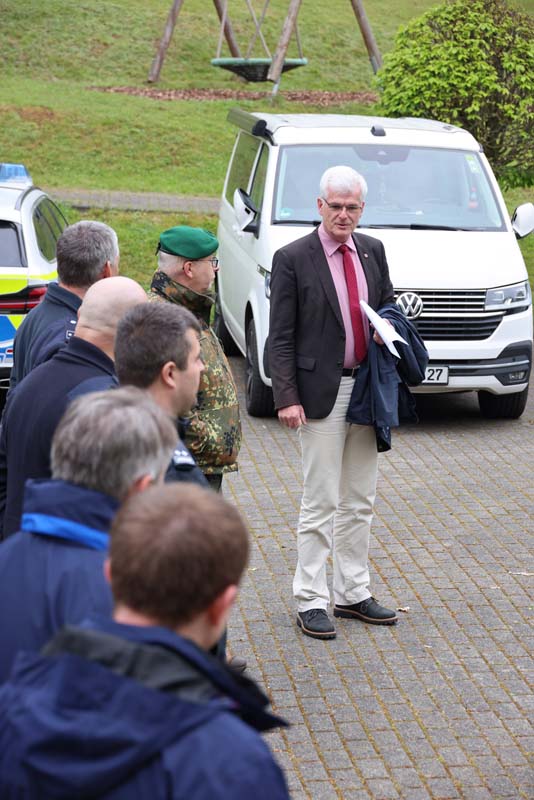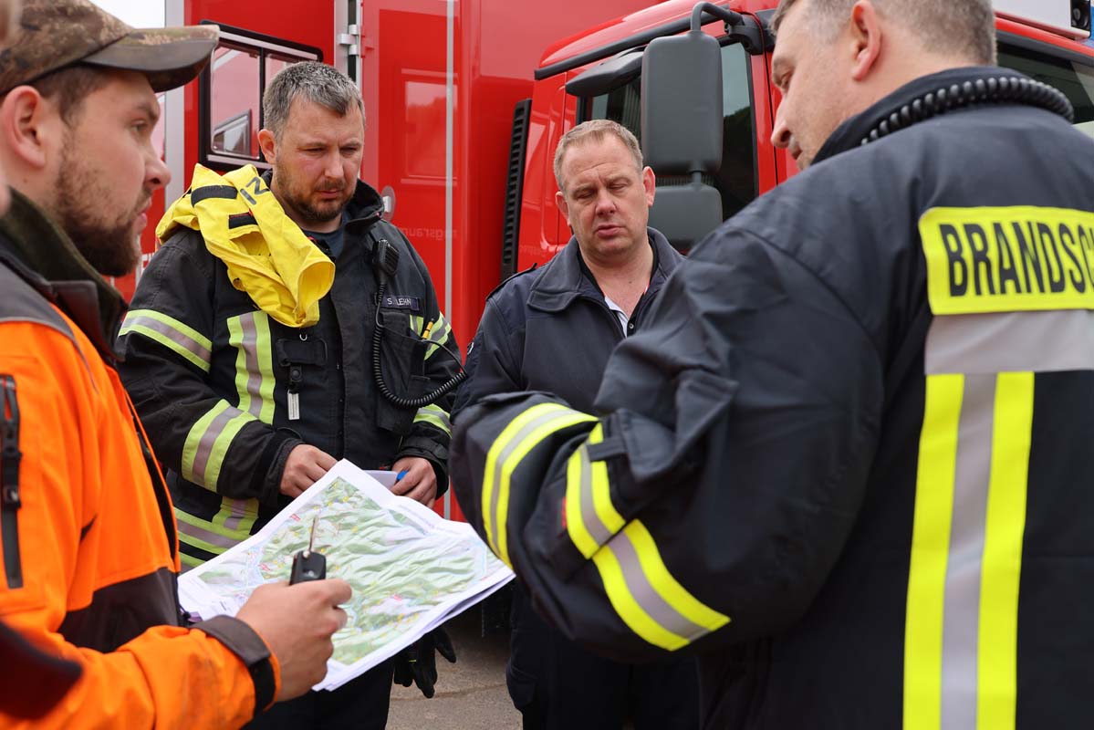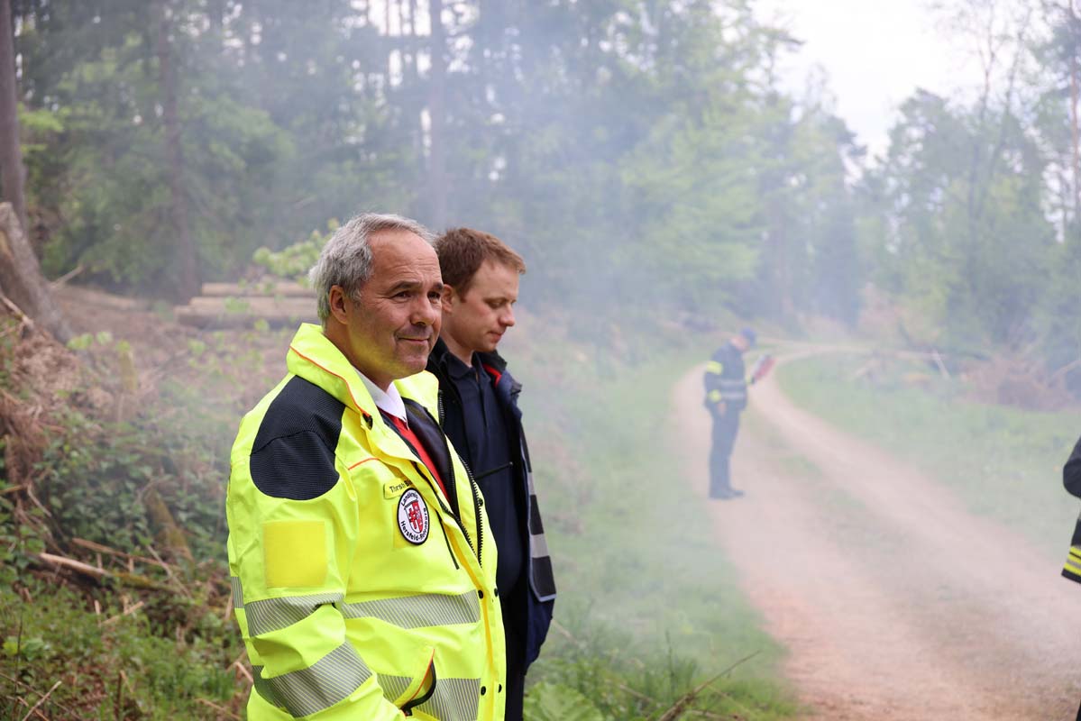 Die Übungsszenarien umfassten die Bewältigung unwegsamen Geländes, die Herstellung der Wasserversorgung in abgelegenen Waldbereichen und das Management zusätzlicher Herausforderungen wie herabgestürzte Bäume und vermisste Personen. Landrat Torsten Warnecke lobte die professionelle Zusammenarbeit: „Vielen Dank an alle Mitglieder des Katastrophenschutzes, die den Samstagvormittag opferten, um an der Übung teilzunehmen. Es ist gut und wichtig, Katastrophen wie Waldbrandszenarien zu üben, um für den Fall der Fälle bestmöglich aufgestellt und vorbereitet zu sein.“
