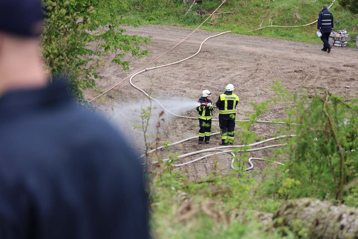 Das Szenario simulierte einen Waldbrand mit einem Durchmesser von einem Kilometer, der sich ausbreitete. „Mit der Übung wollten wir die Zusammenarbeit bei der Brandbekämpfung aller Einsatzabteilungen vom Boden als auch von der Luft testen“, so Übungsleiter und Kreisbrandinspektor Marco Kauffunger. „Bei einem Großeinsatz ist das Zusammenspiel aller Einsatzabteilungen jedes Mal eine Herausforderung“, ergänzte der stellvertretende Übungsleiter Dan Rzeczewsky.