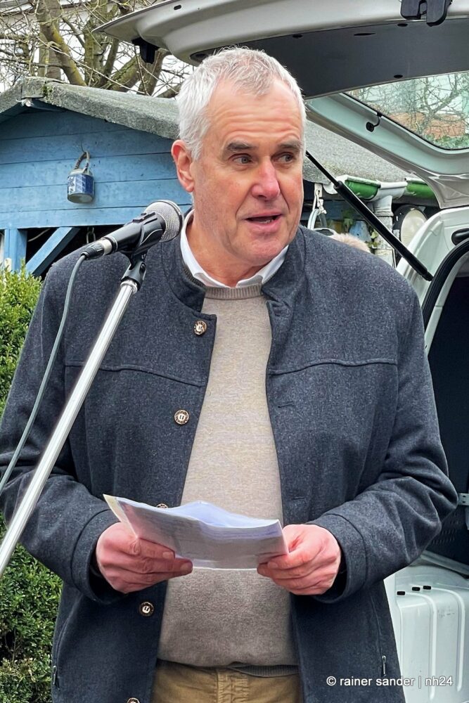 Frau Pfarrerin Kerstin Grenzebach erinnerte daran, dass Unfrieden und Gewalt immer im Kleinen und bei uns selbst beginnen. „Ich wundere mich, dass sich Menschen wundern, dass es Krieg gibt.“ Sie mahnte, Acht zu geben, dass sich solche Dinge nicht wiederholen. Hans Werner Eckhard von der Geschichtswerkstatt schilderte, dass die Auseinandersetzungen bereits am 4. März begonnen hatten und betonte: „Wir sind die Generation der Erinnerung!“.