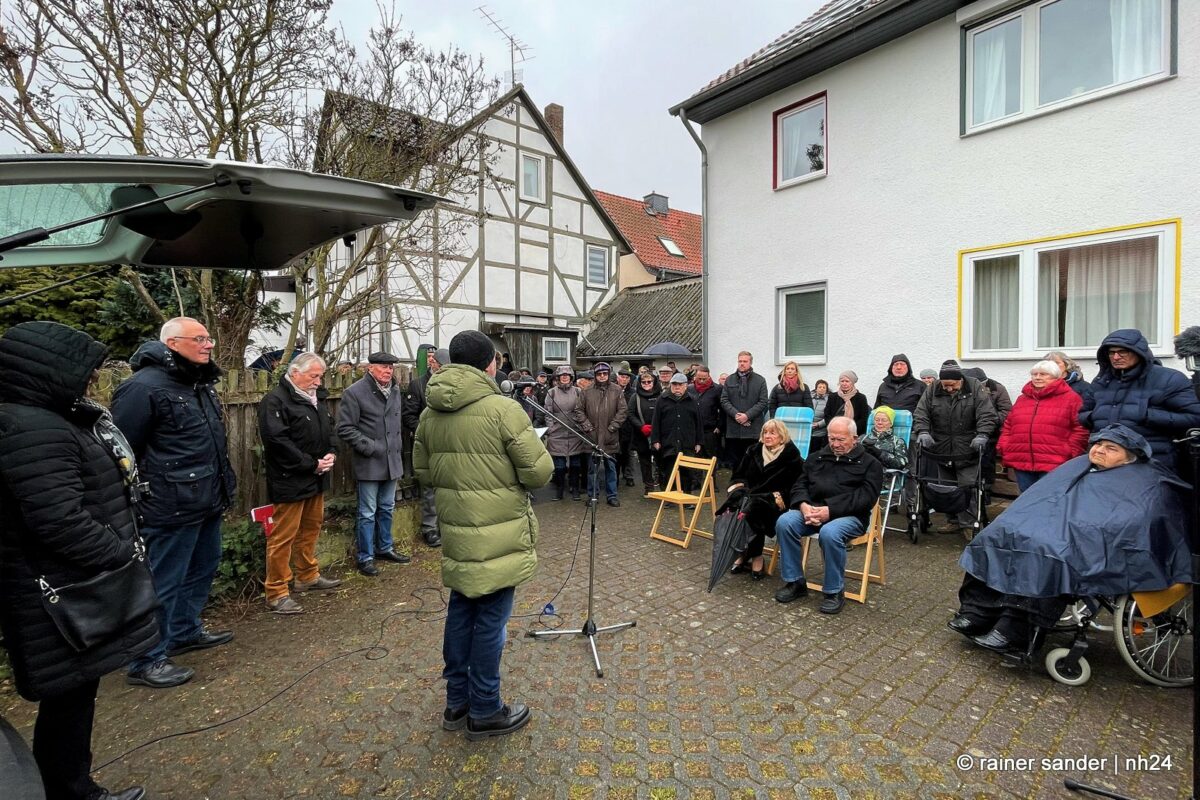 Die Lohfeldener Geschichtswerkstatt hatte eine Gedenkfeier am 5. März vorbereitet und Lohfeldens Bürgermeister Uwe Jäger konnte zusammen mit den Mitgliedern des Vereins eine Gedenktafel am Mehlhof einweihen. Uwe Jäger betonte die Wichtigkeit des Erinnerns und begrüßte den Bundestagsabgeordneten Timon Gremmels und den Landtagsabgeordneten Florian Schneider.