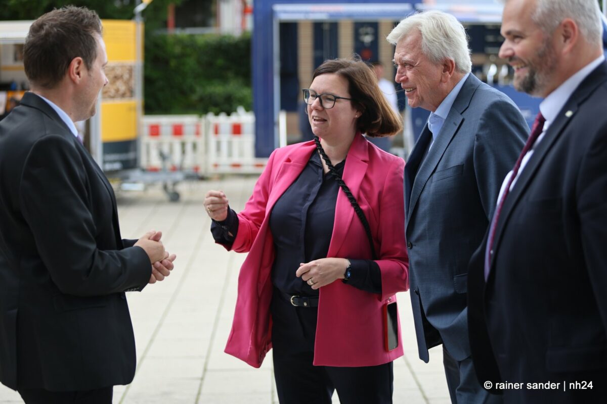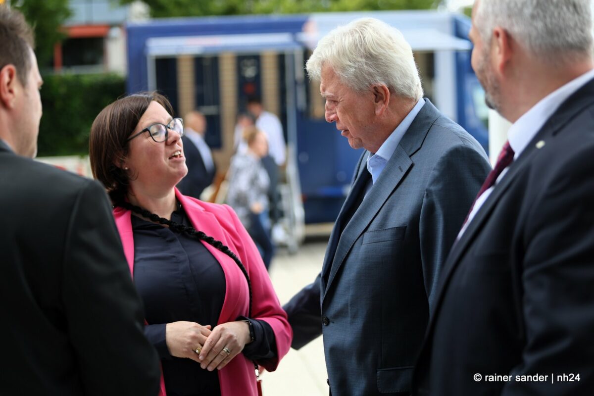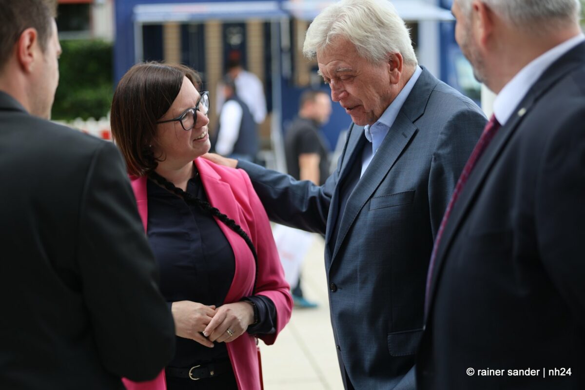 Beide sind inzwischen ehemalige Landtagsabgeordnete und entsprechend herzlich fiel die Begrüßung der Ex-Kollegen Strube und Bouffier aus. Regierung und Opposition im Parlament sind Geschichte. Dass er aus Altersgründen und sie der Karriere wegen Wiesbaden verlassen haben, spielt nur in der Zukunftsbetrachtung eine Rolle und die fällt bei Alt und Jung, CDU und SPD, Mann und Frau naturgemäß differenziert aus. Volker Bouffier mahnt, man solle keine Politik gegen das Auto machen, es gehe nicht um Antriebe, sondern um Kraftstoffe ohne Schadstoffe. Manuela Strube freut sich, dass Volkswagen sein Know-how, was die Elektromobilität betrifft, in Baunatal gebündelt hat.