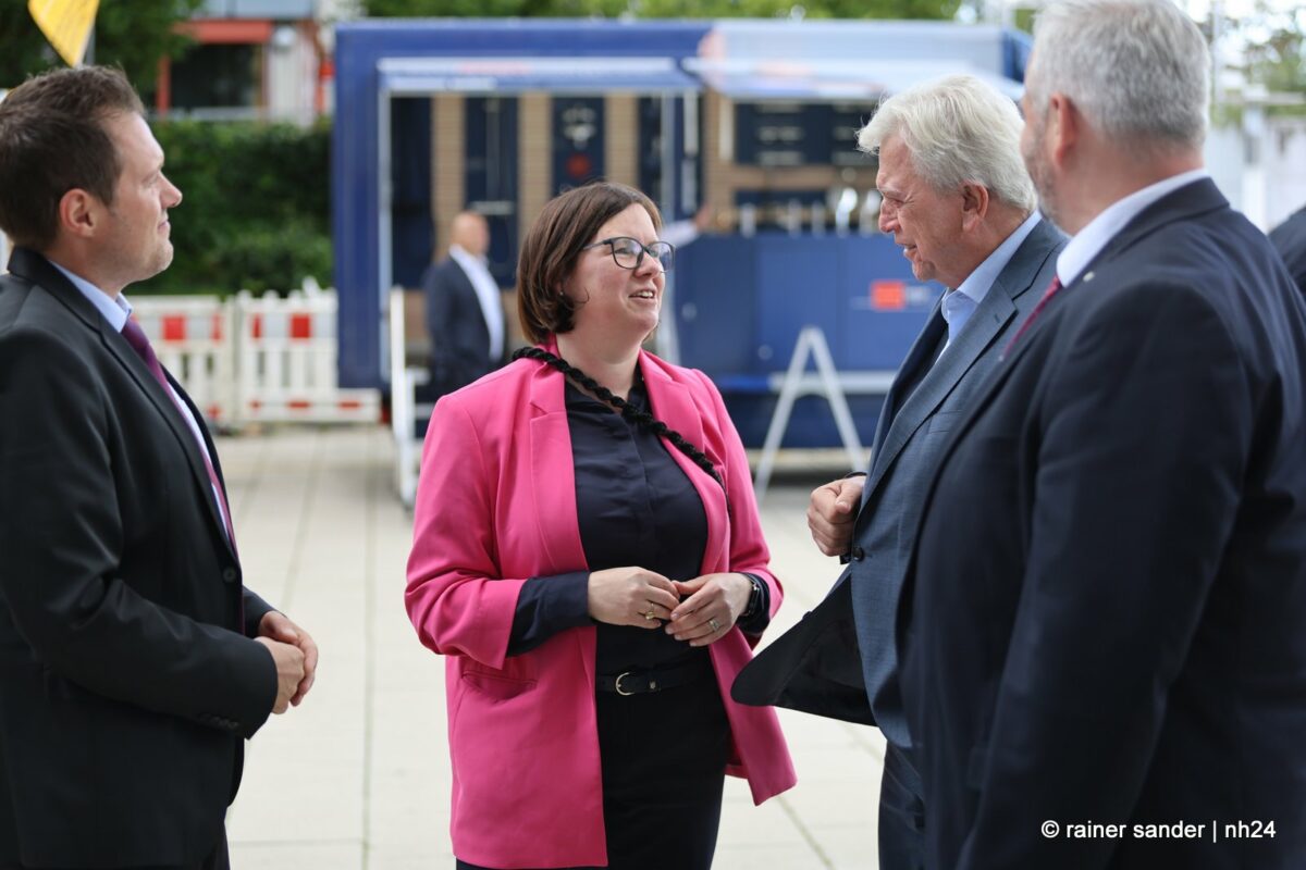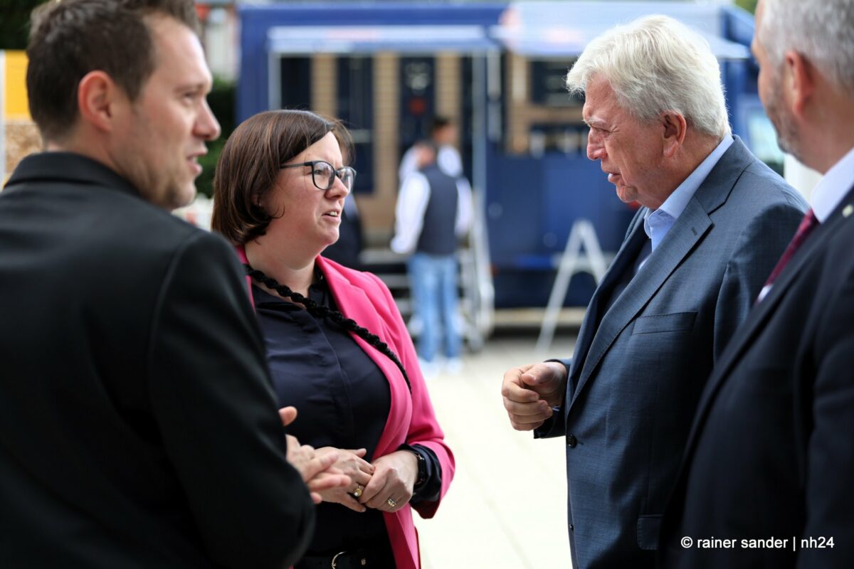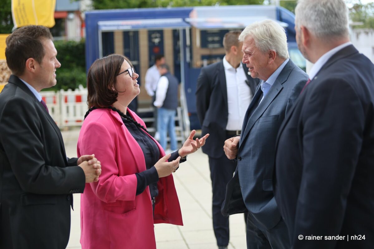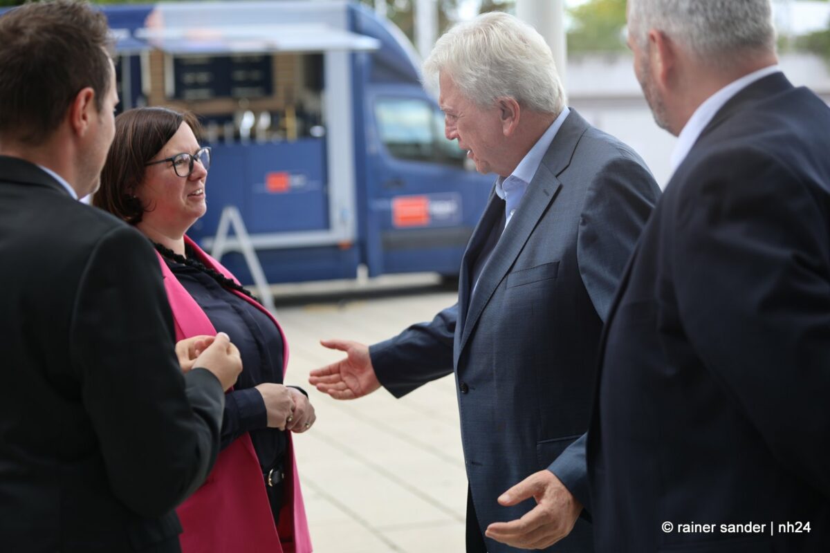 Beide sind inzwischen ehemalige Landtagsabgeordnete und entsprechend herzlich fiel die Begrüßung der Ex-Kollegen Strube und Bouffier aus. Regierung und Opposition im Parlament sind Geschichte. Dass er aus Altersgründen und sie der Karriere wegen Wiesbaden verlassen haben, spielt nur in der Zukunftsbetrachtung eine Rolle und die fällt bei Alt und Jung, CDU und SPD, Mann und Frau naturgemäß differenziert aus. Volker Bouffier mahnt, man solle keine Politik gegen das Auto machen, es gehe nicht um Antriebe, sondern um Kraftstoffe ohne Schadstoffe. Manuela Strube freut sich, dass Volkswagen sein Know-how, was die Elektromobilität betrifft, in Baunatal gebündelt hat.