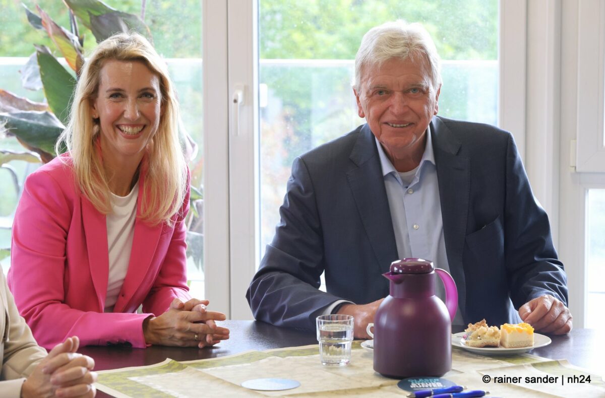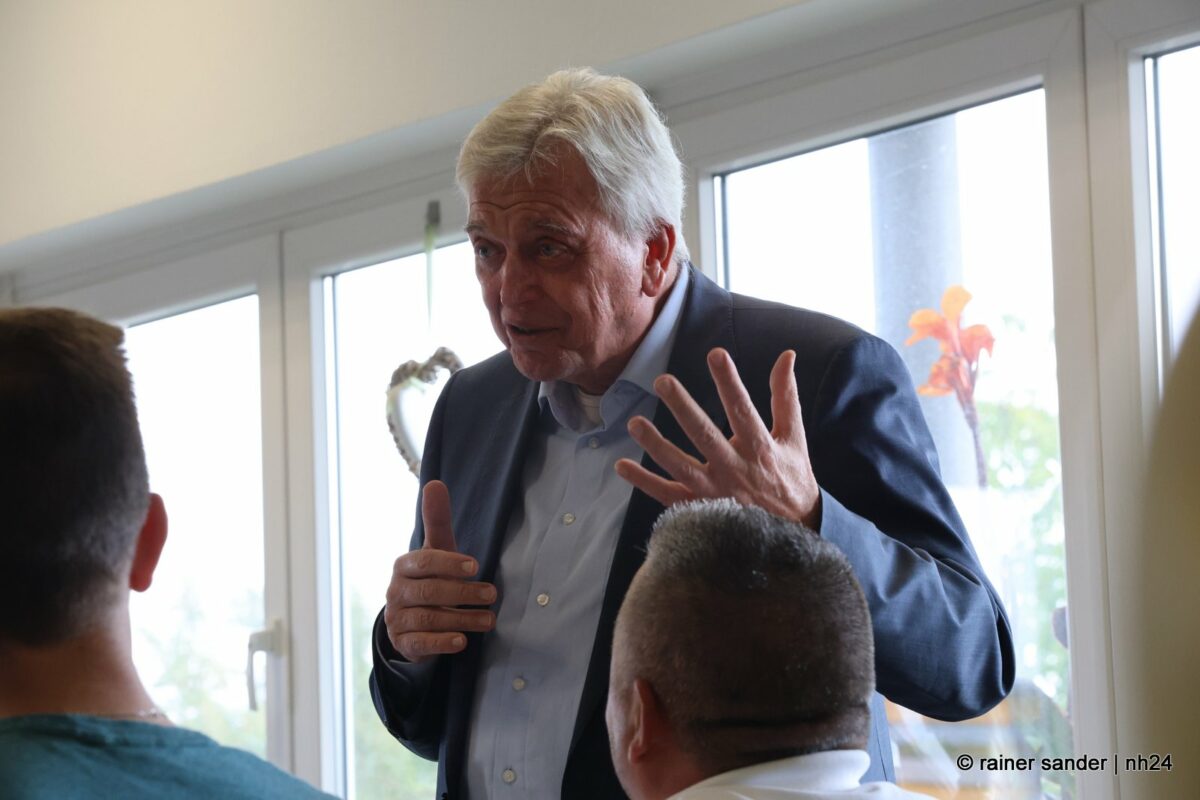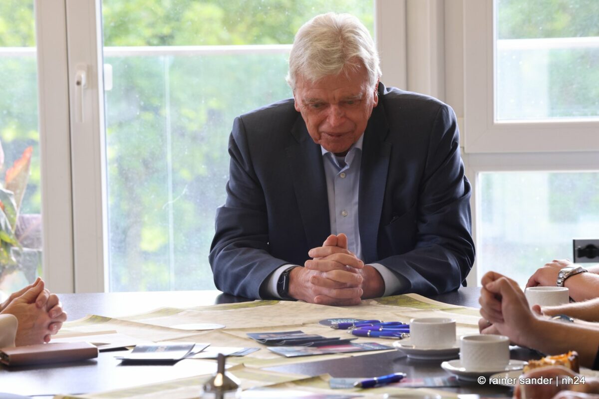 Anschließend ging’s in das MVZ nach Großenritte, wo Gastgeberin Frau Umbach den ehemaligen Hessischen CDU-Vorsitzenden zusammen mit den Baunataler Parteifreunden begrüßte und Landtagskandidatin Anna-Maria Schölch ein Buch über den Landkreis überreichte. Hier betonte Bouffier, dass Nordhessen inzwischen eine Boomregion geworden sei, weniger Arbeitslose habe als Südhessen, was früher jemand für möglich gehalten habe und leider zu wenig aus sich mache.