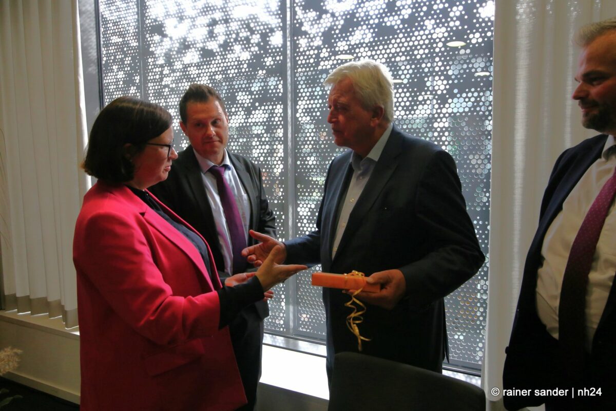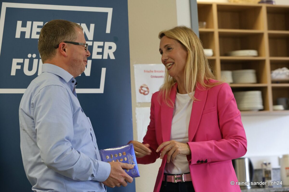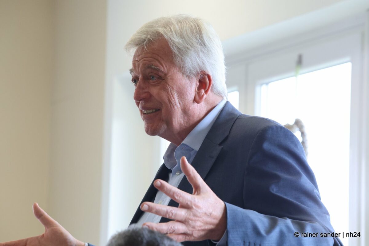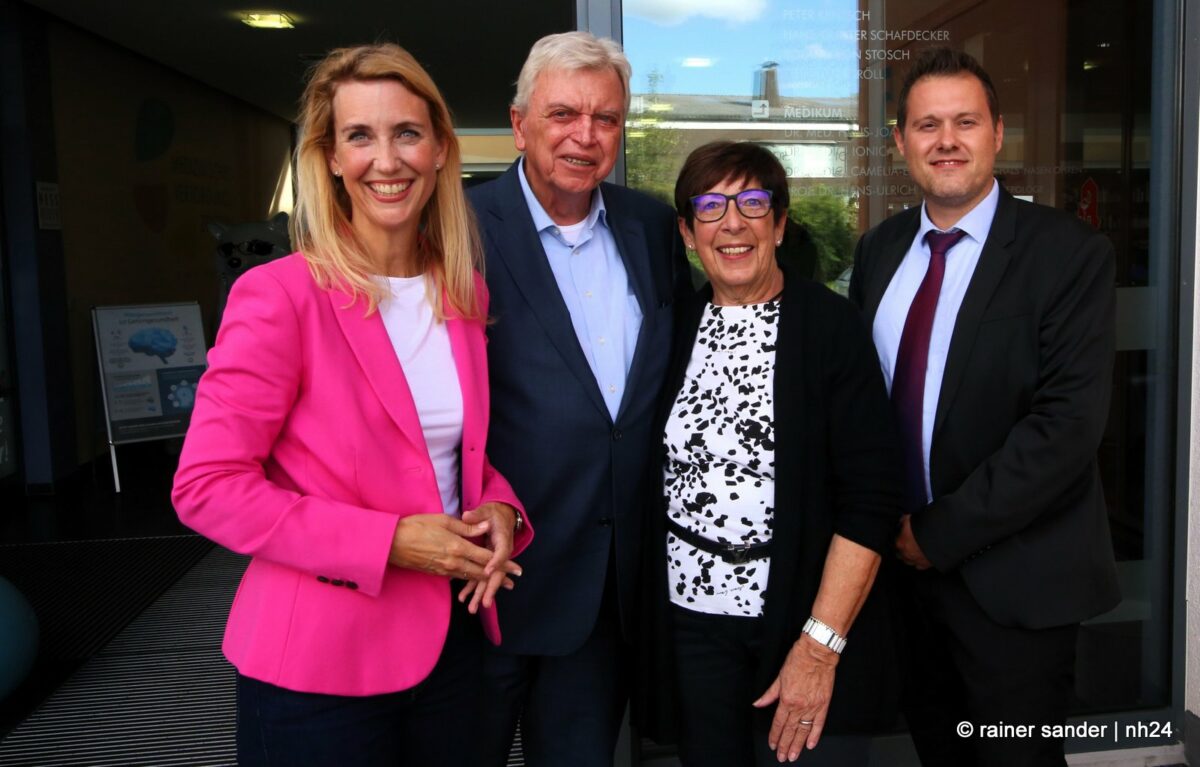 Anschließend ging’s in das MVZ nach Großenritte, wo Gastgeberin Frau Umbach den ehemaligen Hessischen CDU-Vorsitzenden zusammen mit den Baunataler Parteifreunden begrüßte und Landtagskandidatin Anna-Maria Schölch ein Buch über den Landkreis überreichte. Hier betonte Bouffier, dass Nordhessen inzwischen eine Boomregion geworden sei, weniger Arbeitslose habe als Südhessen, was früher jemand für möglich gehalten habe und leider zu wenig aus sich mache.