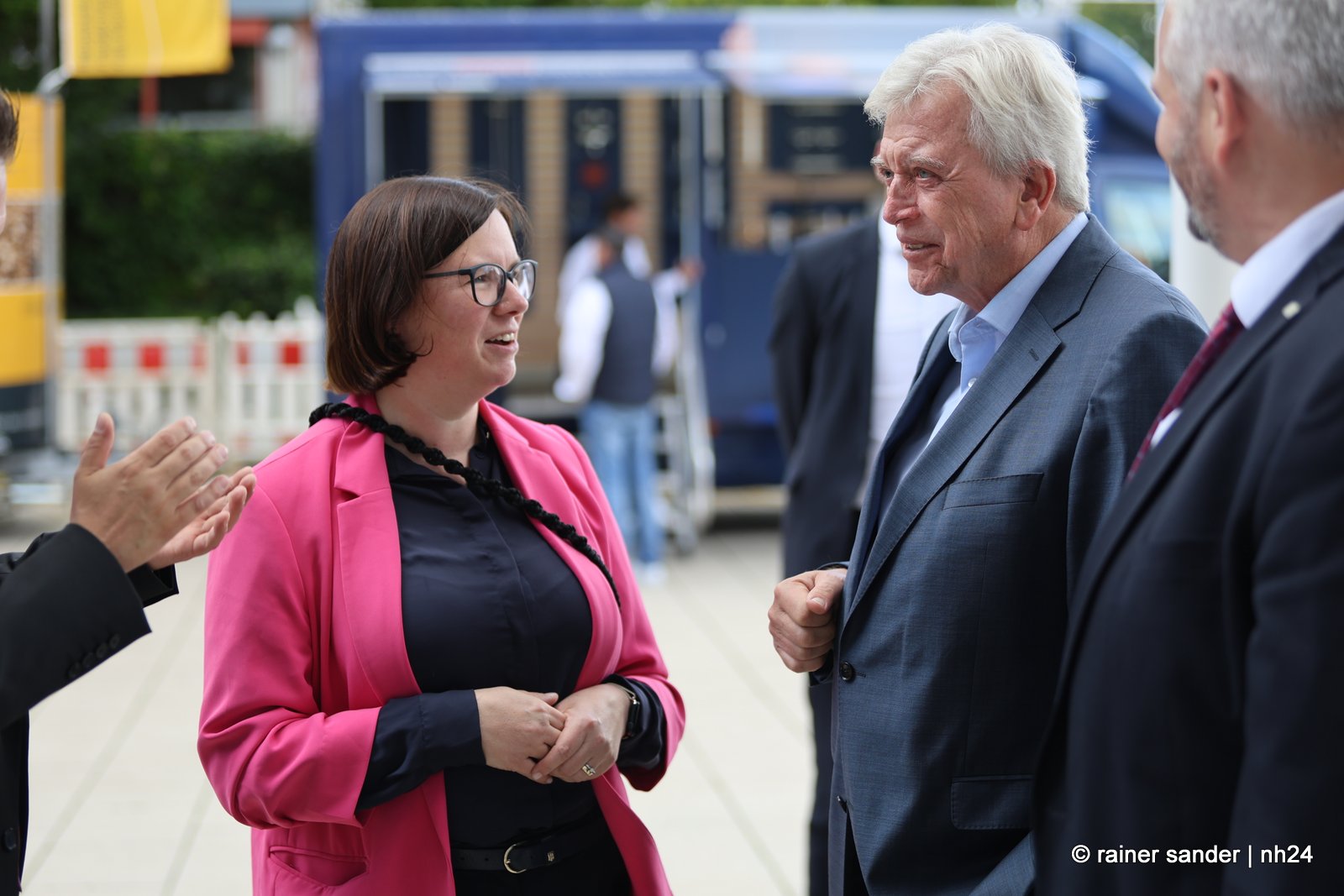 Beide sind inzwischen ehemalige Landtagsabgeordnete und entsprechend herzlich fiel die Begrüßung der Ex-Kollegen Strube und Bouffier aus. Regierung und Opposition im Parlament sind Geschichte. Dass er aus Altersgründen und sie der Karriere wegen Wiesbaden verlassen haben, spielt nur in der Zukunftsbetrachtung eine Rolle und die fällt bei Alt und Jung, CDU und SPD, Mann und Frau naturgemäß differenziert aus. Volker Bouffier mahnt, man solle keine Politik gegen das Auto machen, es gehe nicht um Antriebe, sondern um Kraftstoffe ohne Schadstoffe. Manuela Strube freut sich, dass Volkswagen sein Know-how, was die Elektromobilität betrifft, in Baunatal gebündelt hat.