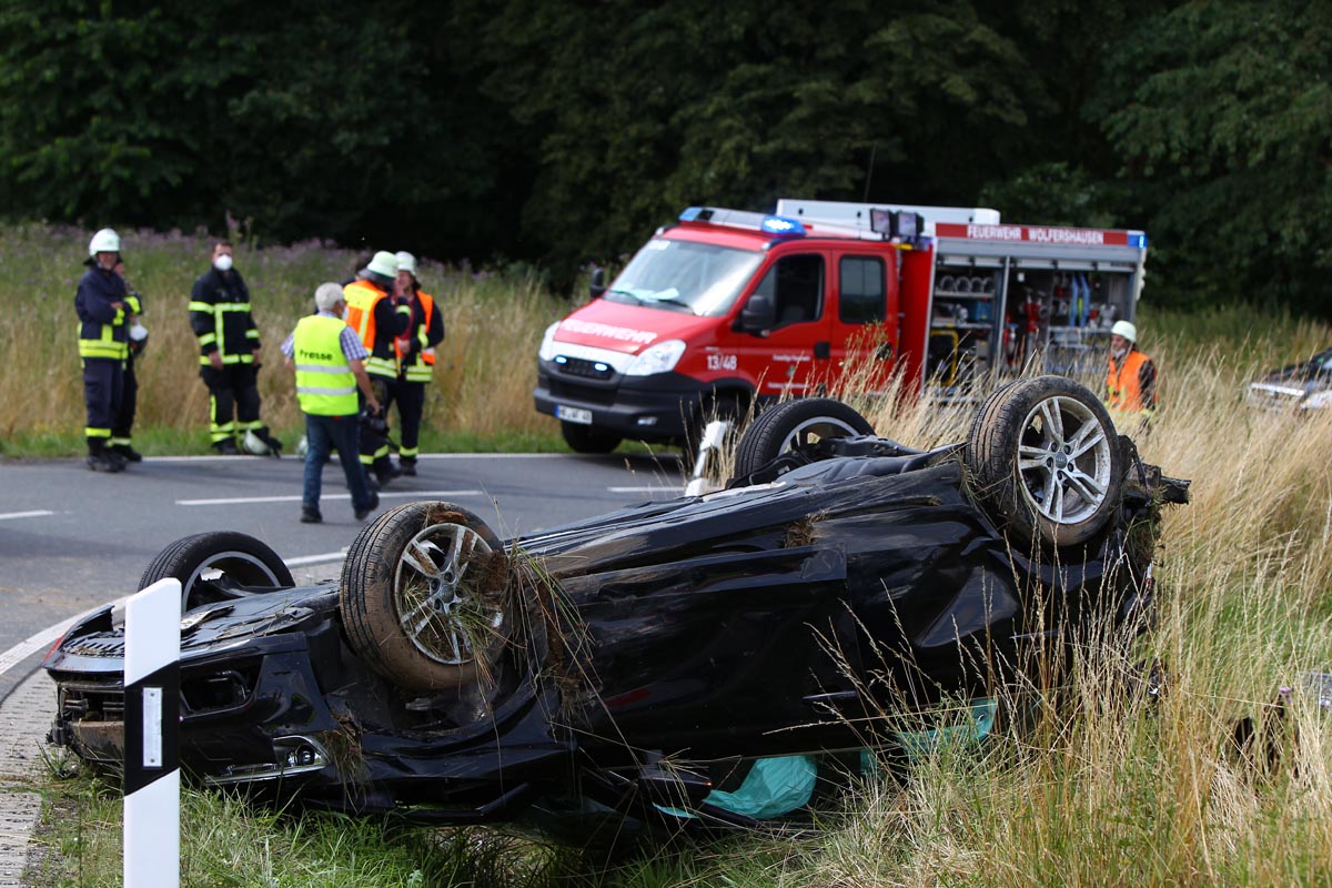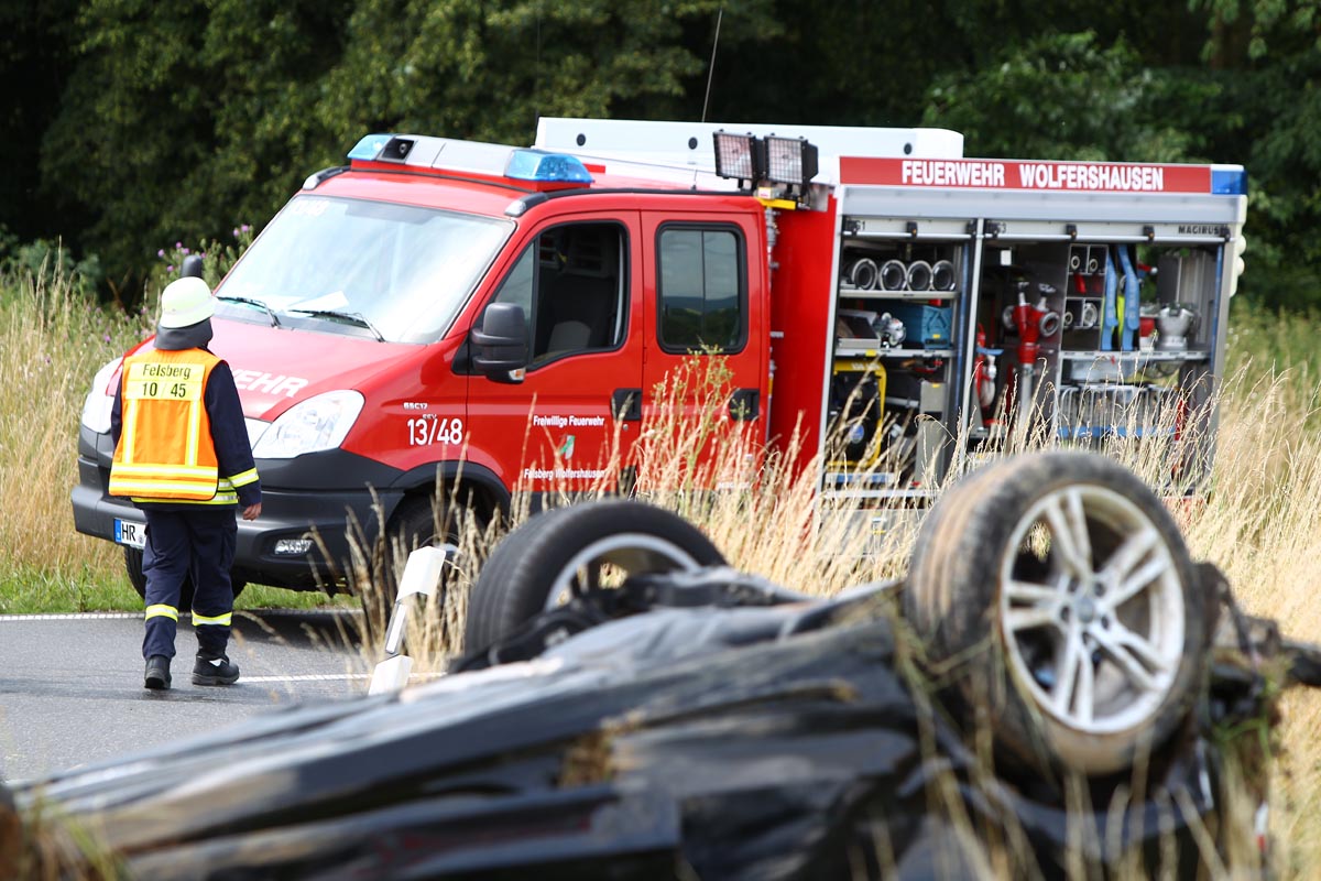Das Fahrzeug, dessen Fahrer von Guxhagen in Richtung Wolfershausen fuhr, geriet ausgangs einer lang gezogenen Linkskurve nach rechts von der Fahrbahn ab, wo es sich überschlug. Die Polizei geht bislang von nicht angepasster Geschwindigkeit aus. Bei dem 35 Jahre alten Fahrer aus Kassel wurde eine Blutentnahme angeordnet. Er und seine beiden jüngeren Mitfahrer aus Kassel erlitten schwere, wie ein Polizeisprecher in Melsungen berichtet, keinesfalls lebensbedrohliche Verletzungen.