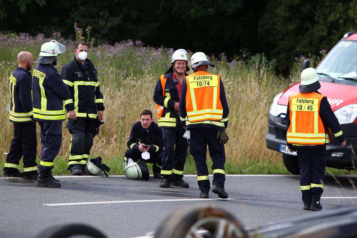 Vor Ort waren die Feuerwehren Guxhagen, Felsberg und Edermünde sowie drei Rettungsteams, zwei Notärzte, ein Leitender Notarzt und ein Organisatorischer Leiter Rettungsdienst. Die Einsatzleitung der rund 25 Leute hatte Benjamin Busch von der Feuerwehr Guxhagen.