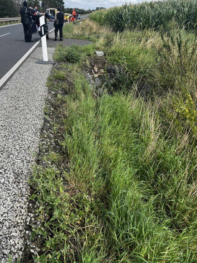 Der Biker war mit seiner Suzuki auf der Bundesstraße von Harle in Richtung Rhünda unterwegs, als er ausgangs einer Linkskurve aus bislang ungeklärten Umständen nach rechts von der Fahrbahn abkam. Das Motorrad stieß dabei vor die Oberkante eines Wasserdurchlasses, hob wenige Meter ab und durchpflügte im weiteren Verlauf den Straßengraben. Nach weiteren 50 Metern kam die Maschine samt dem lebensbedrohlich verletzten Motorradfahrer im Straßengraben zum Liegen. Ersthelfer kümmerten sich bis zum Eintreffen des Rettungsdienstes um den Schwerverletzten. Nach seiner notärztlichen Versorgung vor Ort wurde der 51-Jährige mit dem Rettungshubschrauber in eine Klinik nach Kassel geflogen.