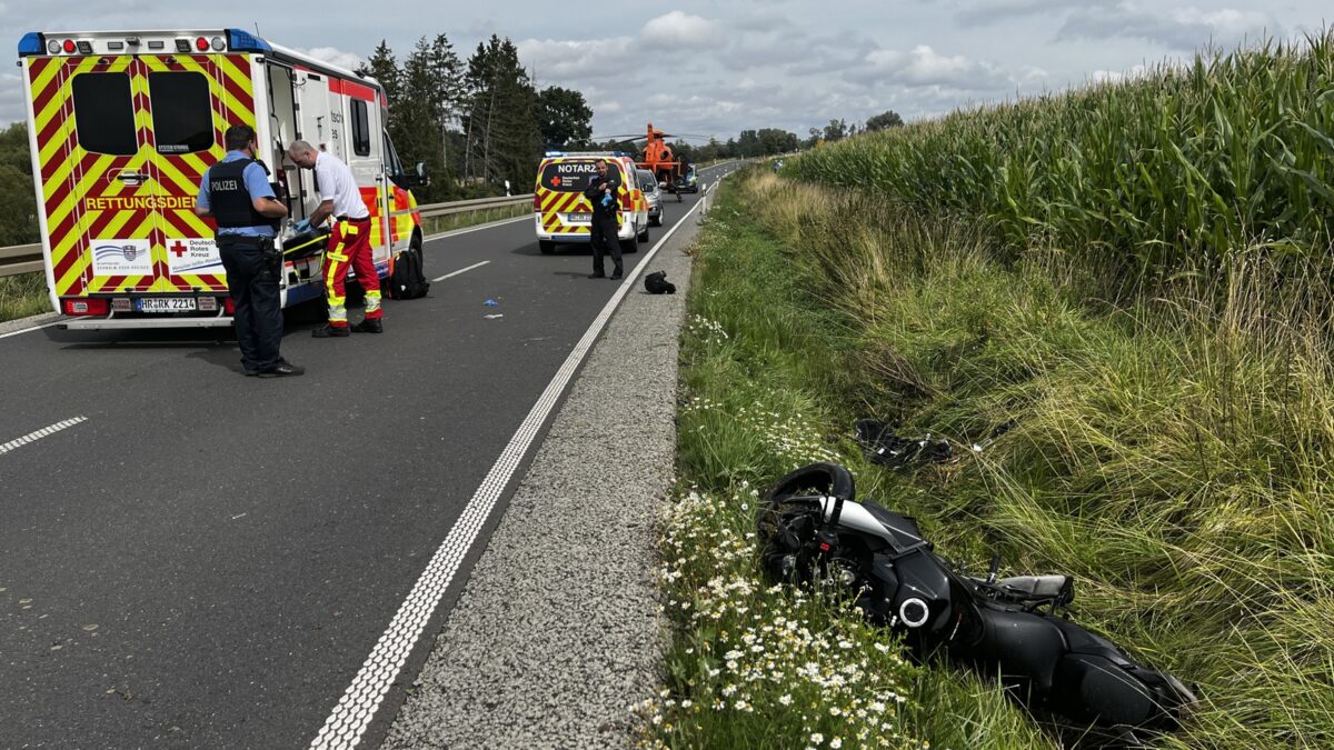 FELSBERG. Bei einem schweren Alleinunfall auf der Bundesstraße 253 nahe Felsberg-Rhünda im nordhessischen Schwalm-Eder-Kreis wurde am Sonntagmittag gegen 11:40 Uhr ein 51-jähriger Motorradfahrer aus Edermünde lebensbedrohlich verletzt.