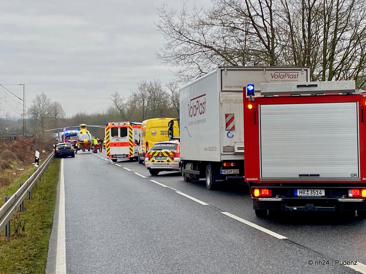 Die 50-jährige Unfallverursacherin sowie ihr 57-jähriger Begleiter wurden bei dem Unfall schwer verletzt und in umliegende Krankenhäuser gebracht. Die 38- jährige Malsfelderin wurde schwer, glücklicherweise aber nicht lebensbedrohlich verletzt, sie musste mit dem Rettungshubschrauber in eine Kasseler Klinik geflogen werden.