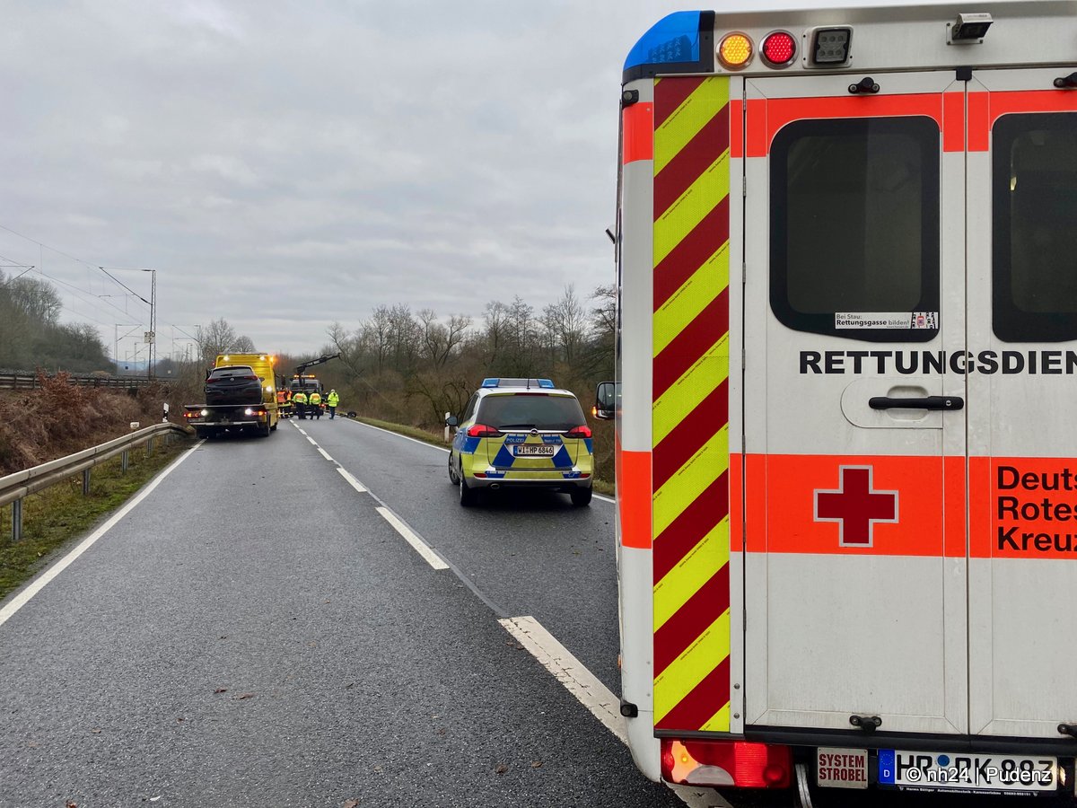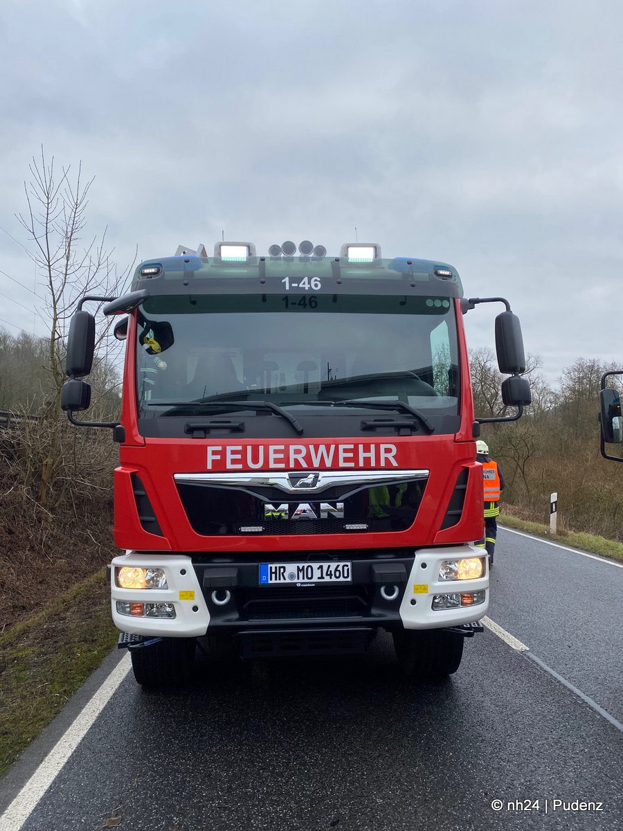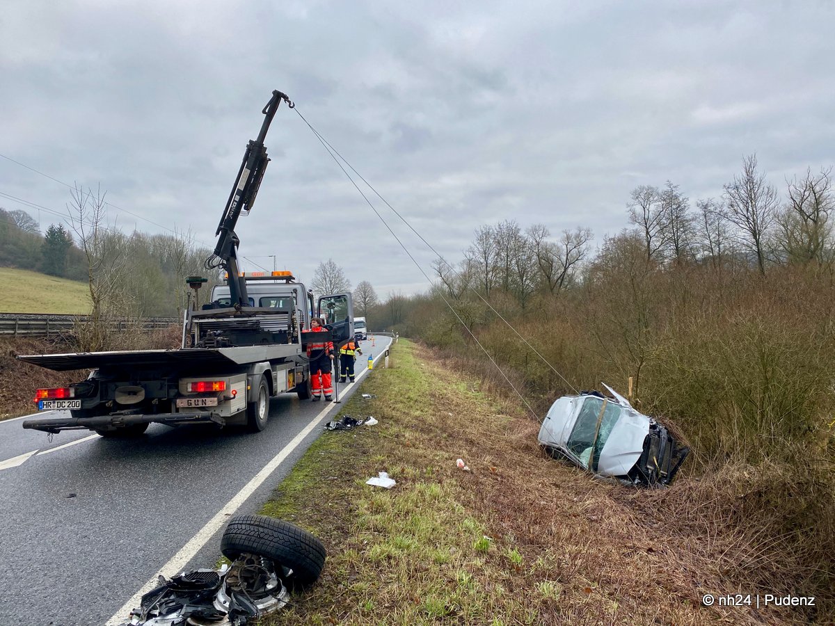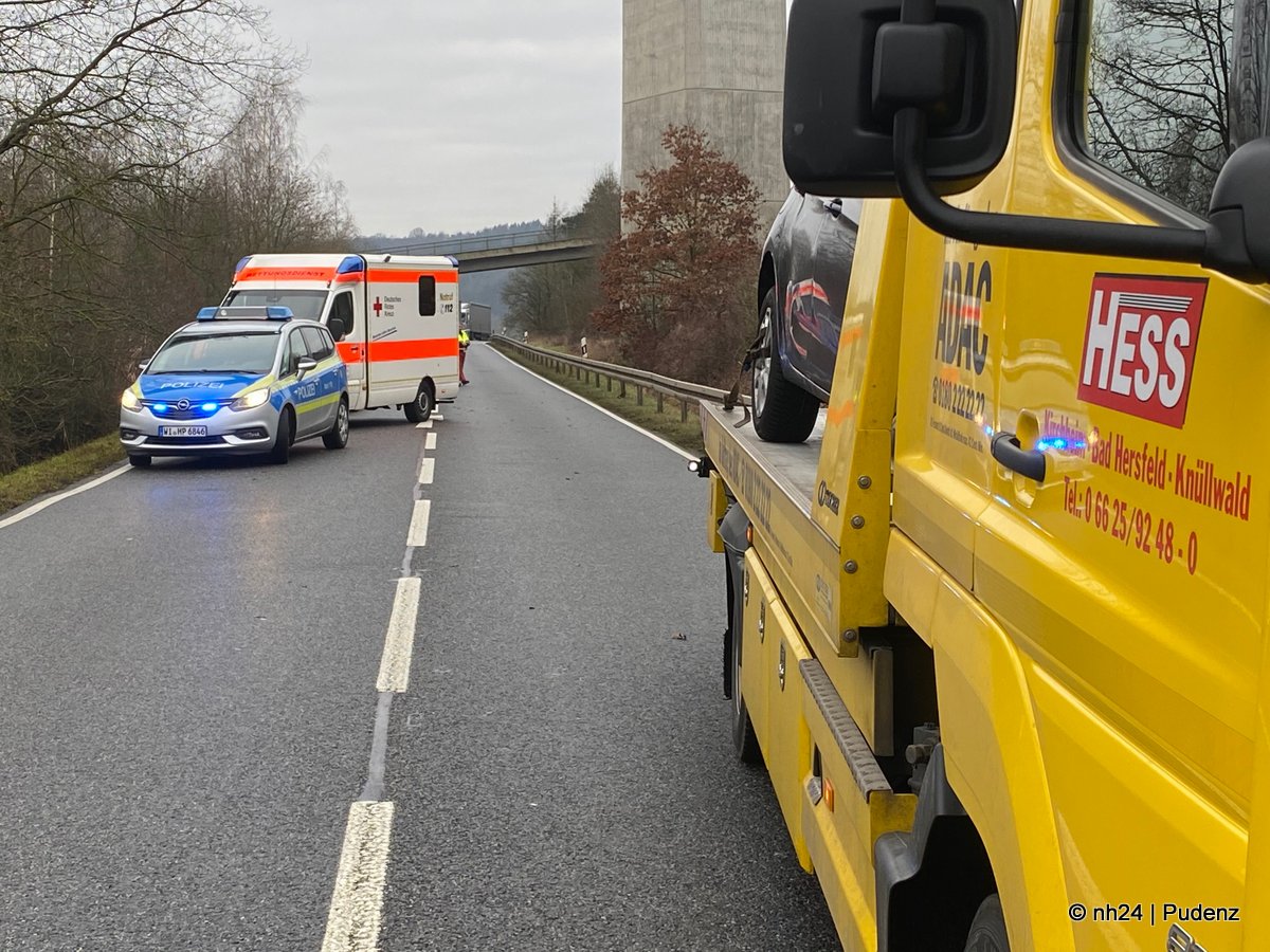 Nach Informationen von der Einsatzstelle befuhr eine 50-jährige Frau aus Konnefeld mit ihrem Fahrzeug die B83 von Morschen in Richtung Melsungen. Aus bislang ungeklärten Umständen geriet sie in Höhe der Eisenbahnbrücke mit ihrem Fahrzeug nach rechts auf die Bankette und schleuderte quer über die Fahrbahn. Ein aus Richtung Melsungen kommender Lkw sowie zwei folgende Pkw konnten noch rechtzeitig ausweichen. Eine 38-jährige Frau aus Malsfeld-Dagobertshausen, welche als drittes Fahrzeug in der Kolonne unterwegs war, konnte nicht mehr ausweichen und stieß frontal mit dem ihr entgegenkommenden schleudernden Fahrzeug zusammen. Durch den Zusammenstoß wurde das Fahrzeug der Malsfelderin nach rechts von der Fahrbahn abgewiesen und stürzte eine rund sechs Meter tiefe Böschung hinab. Der Pkw überschlug sich zudem noch und kam auf allen vier Rädern zum Stehen.