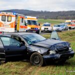 Der Audi-Fahrer schaffte es nicht mehr rechtzeitig sein Fahrzeug zum Stehen zu bringen und krachte der Bad Zwestenerin frontal in die Fahrerseite. Durch den Aufprall wurden die beiden Insassen des Audi schwer verletzt. Die Bad Zwestenerin sowie ihr 20-jähriger Beifahrer wurden bei dem Unfall glücklicherweise nur leicht verletzt. Beide Fahrzeuge wurden durch den Zusammenprall auf einen angrenzenden Acker geschleudert. Ersthelfer kümmerten sich bis zum Eintreffen des Rettungsdienstes um die vier Verletzten.