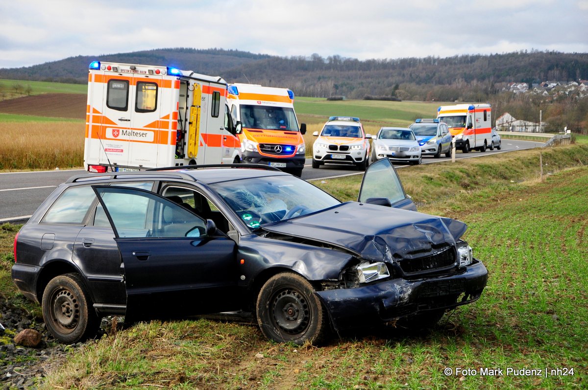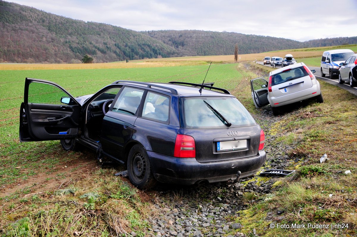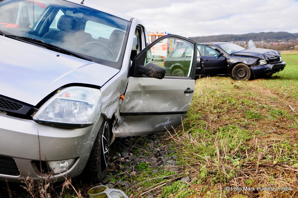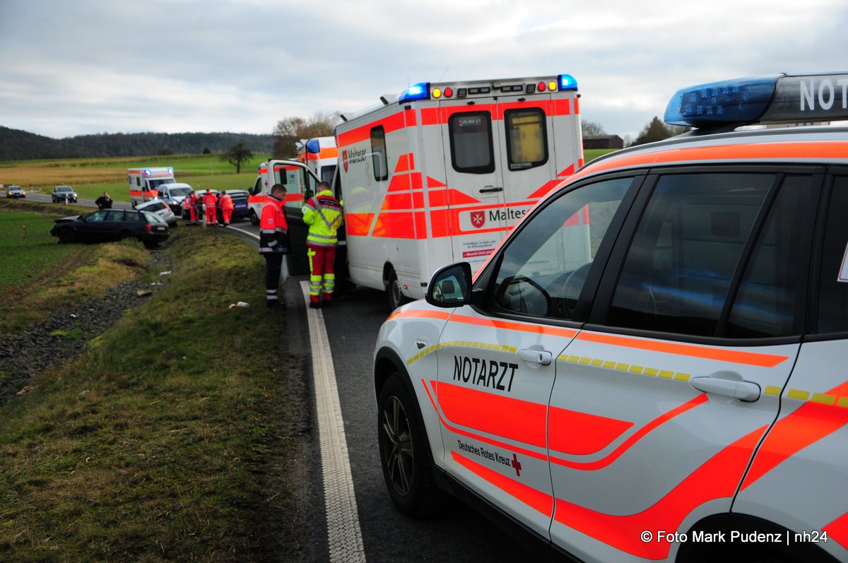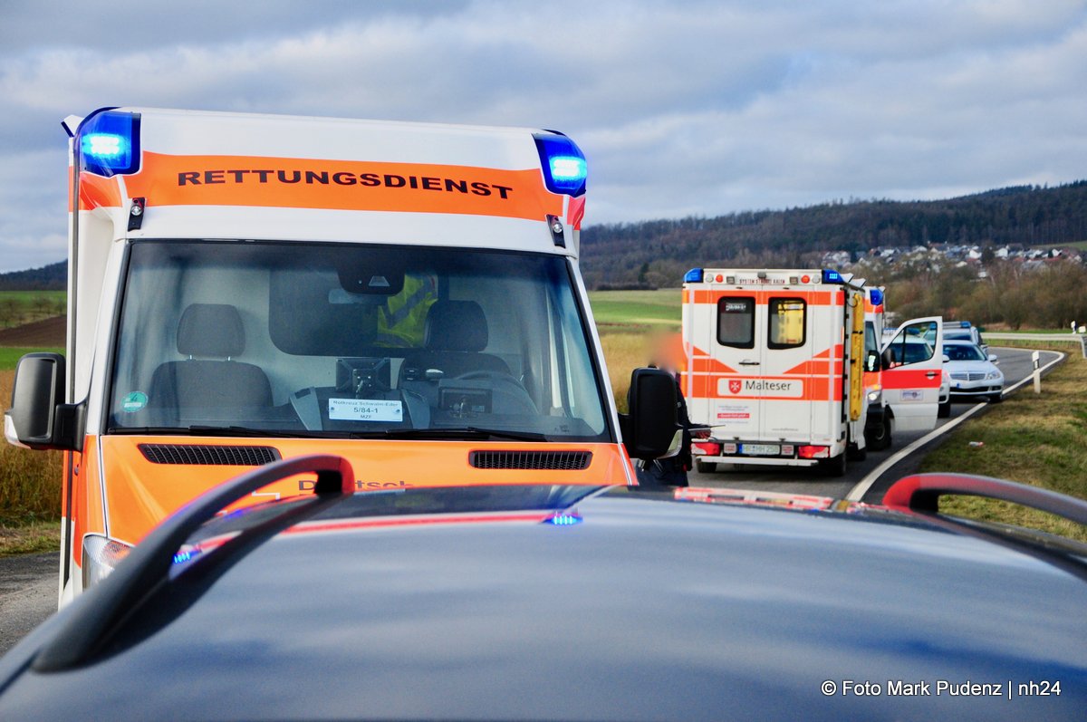 Der Audi-Fahrer schaffte es nicht mehr rechtzeitig sein Fahrzeug zum Stehen zu bringen und krachte der Bad Zwestenerin frontal in die Fahrerseite. Durch den Aufprall wurden die beiden Insassen des Audi schwer verletzt. Die Bad Zwestenerin sowie ihr 20-jähriger Beifahrer wurden bei dem Unfall glücklicherweise nur leicht verletzt. Beide Fahrzeuge wurden durch den Zusammenprall auf einen angrenzenden Acker geschleudert. Ersthelfer kümmerten sich bis zum Eintreffen des Rettungsdienstes um die vier Verletzten.