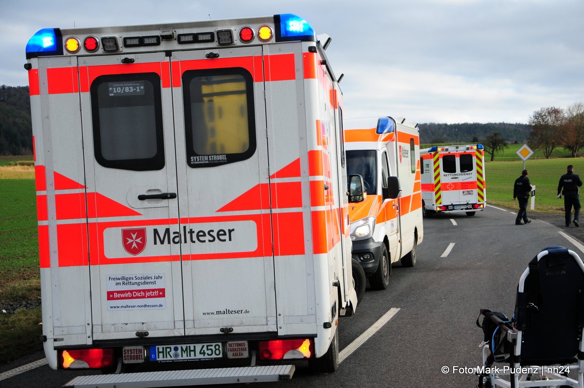 Insgesamt waren vier Rettungswagen, ein Notarzt, ein Leitender Notarzt, ein Organisatorischer Leiter Rettungsdienst sowie die Polizei Fritzlar vor Ort im Einsatz.