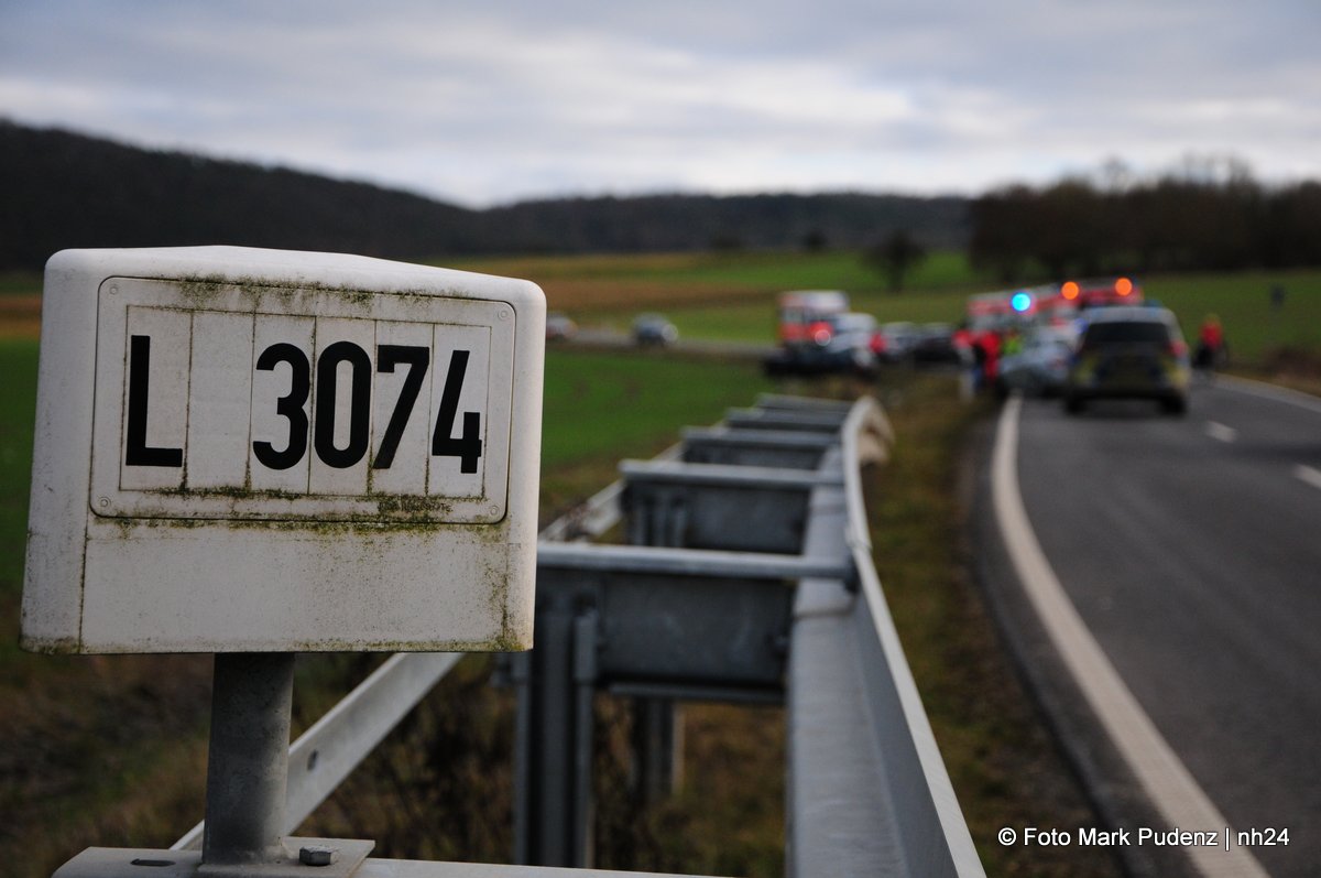 Die L3074 War während der Rettungs- und Bergungsmaßnahmen für rund eine Stunde voll gesperrt.