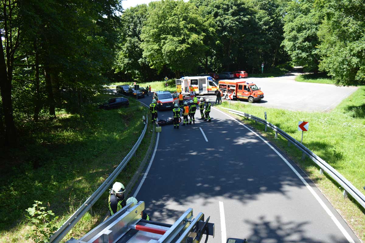 Auf der Landesstraße 3241 bei Meißner stürzte am Samstag um 13:22 Uhr eine 26-Jährige aus Buxtehude mit ihrem Kraftrad. In einer Linkskurve verlor sie die Kontrolle, prallte gegen die rechte Schutzplanke und rutschte über die Fahrbahn. Die Frau erlitt leichte Verletzungen und wurde nach einer Erstversorgung ins Krankenhaus gebracht. Die Feuerwehren Hausen und Velmeden richteten für die Dauer der Rettungsarbeiten eine Vollsperrung in beiden Richtungen ein, nahmen auslaufendes Benzin auf und unterstützten bei den Rettungsarbeiten. „Besonderen Dank an die Ersthelfer, die sich bis zum Eintreffen der Rettungskräfte um die Fahrerin gekümmert haben“, so Stefan Schlegel von der Feuerwehr Hessisch Lichtenau.