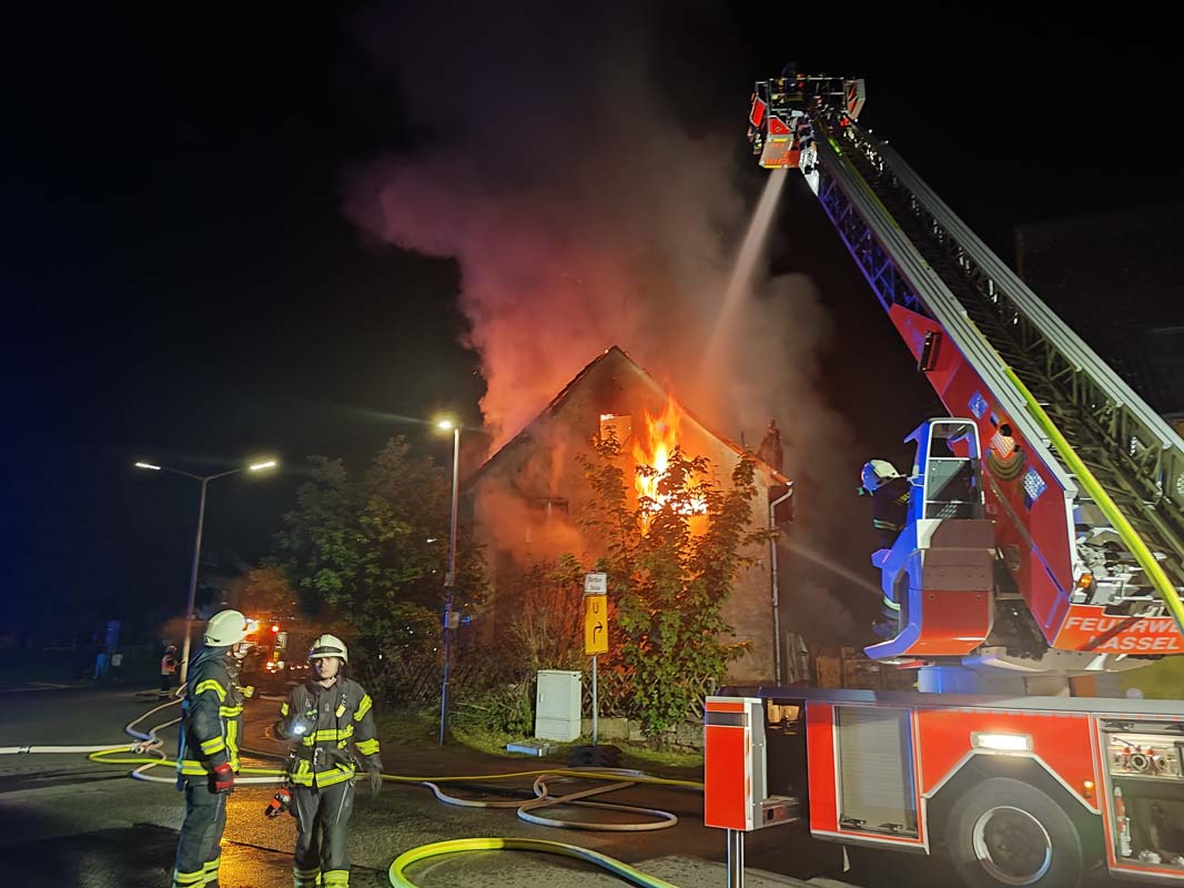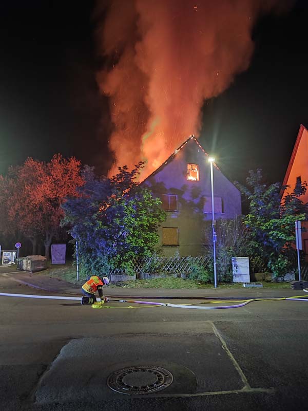 Ein Anwohner alarmierte die Feuerwehr am Dienstag gegen 23:40 Uhr zur Nürnberger Straße. Bei Eintreffen der Feuerwehr Waldau stand das Haus bereits in Vollbrand. „Durch unseren schnellen Einsatz konnte eine Brandausbreitung auf das benachbarte Gebäude verhindert werden“, berichtet Steffen Rödel, Einsatzleiter der Berufsfeuerwehr. Aufgrund der Einsturzgefahr konnte das Fachwerkhaus nicht betreten werden. Um die letzten Glutnester zu löschen, musste das Gebäude mithilfe eines Baggers abgerissen werden, so Rödel weiter. Der Feuerwehreinsatz dauerte bis 11:30 Uhr am Mittwoch.