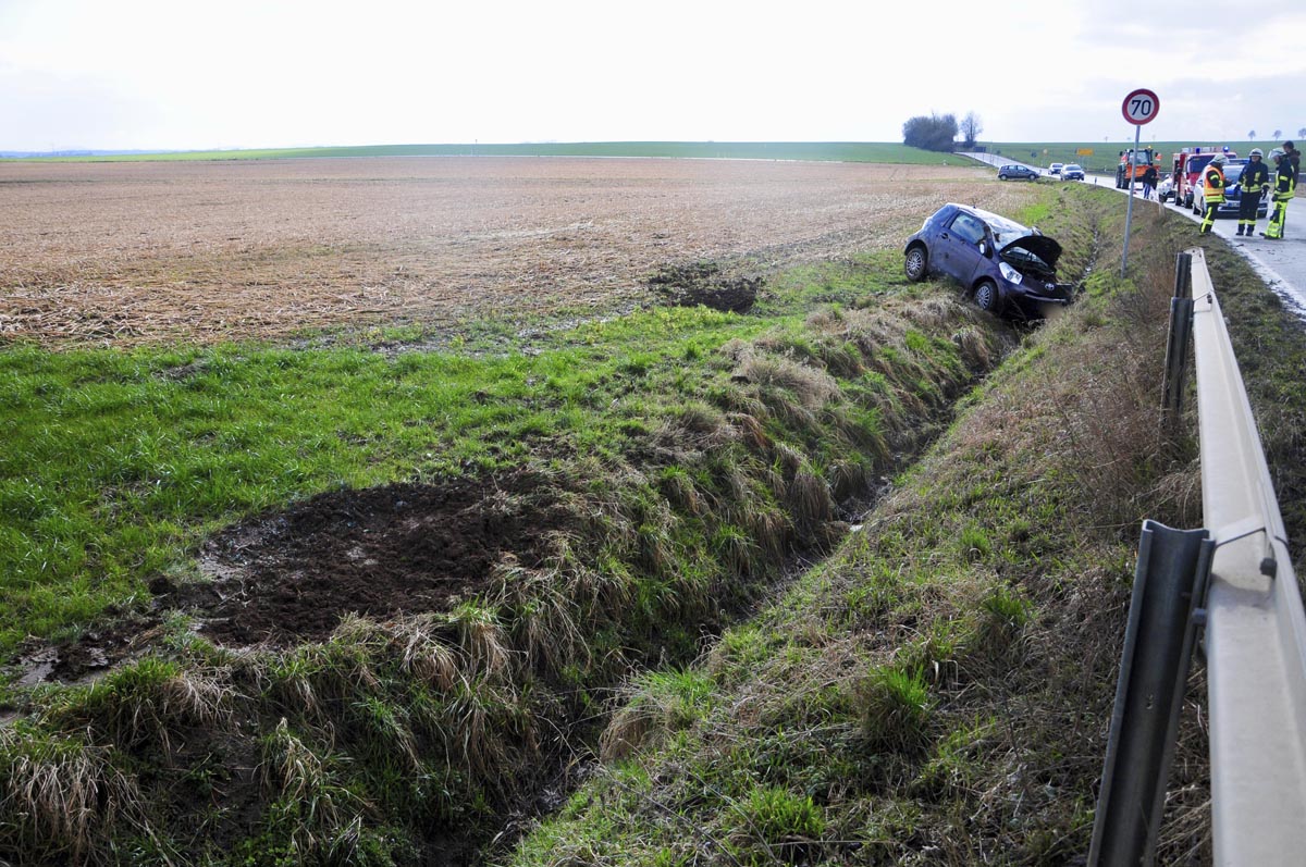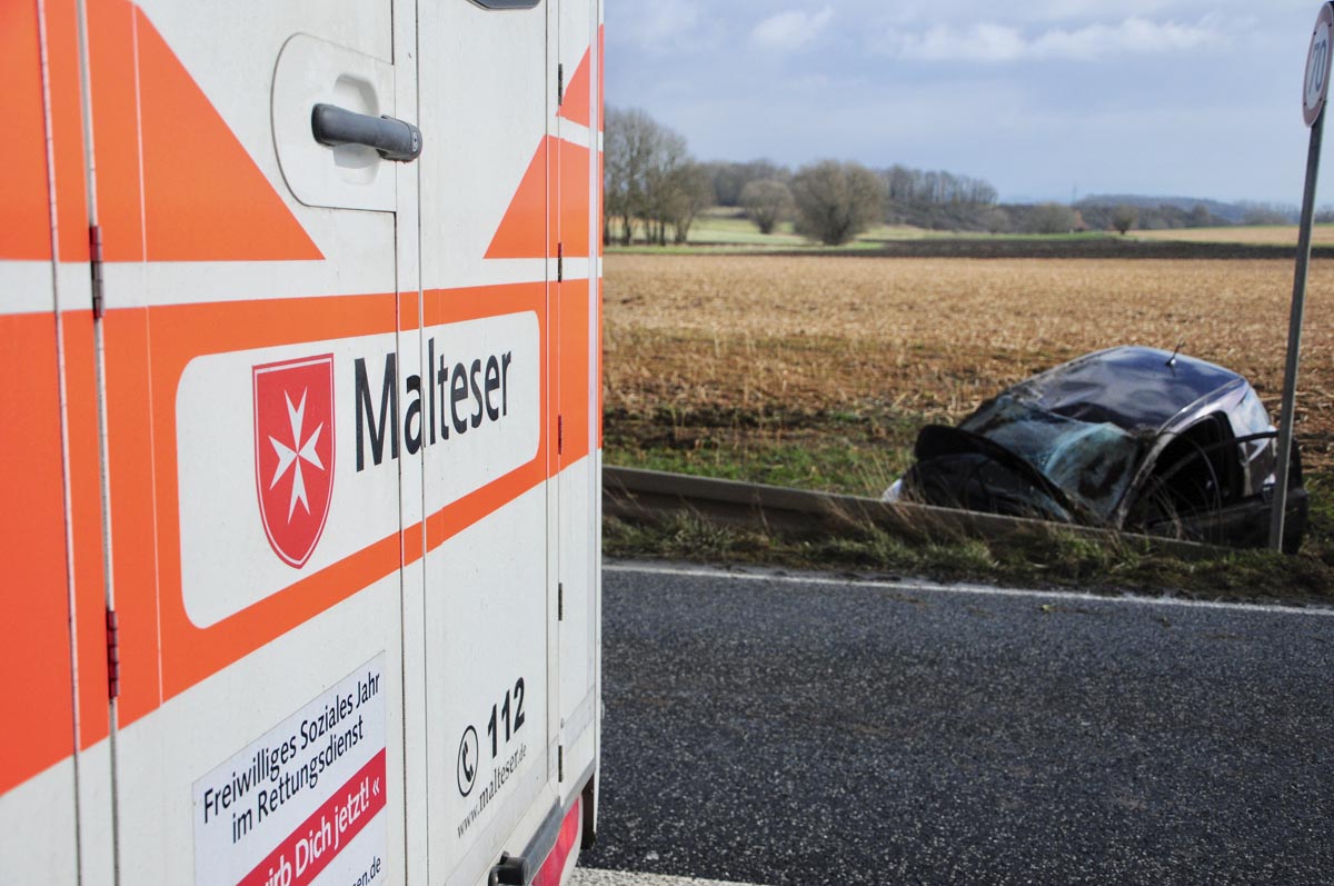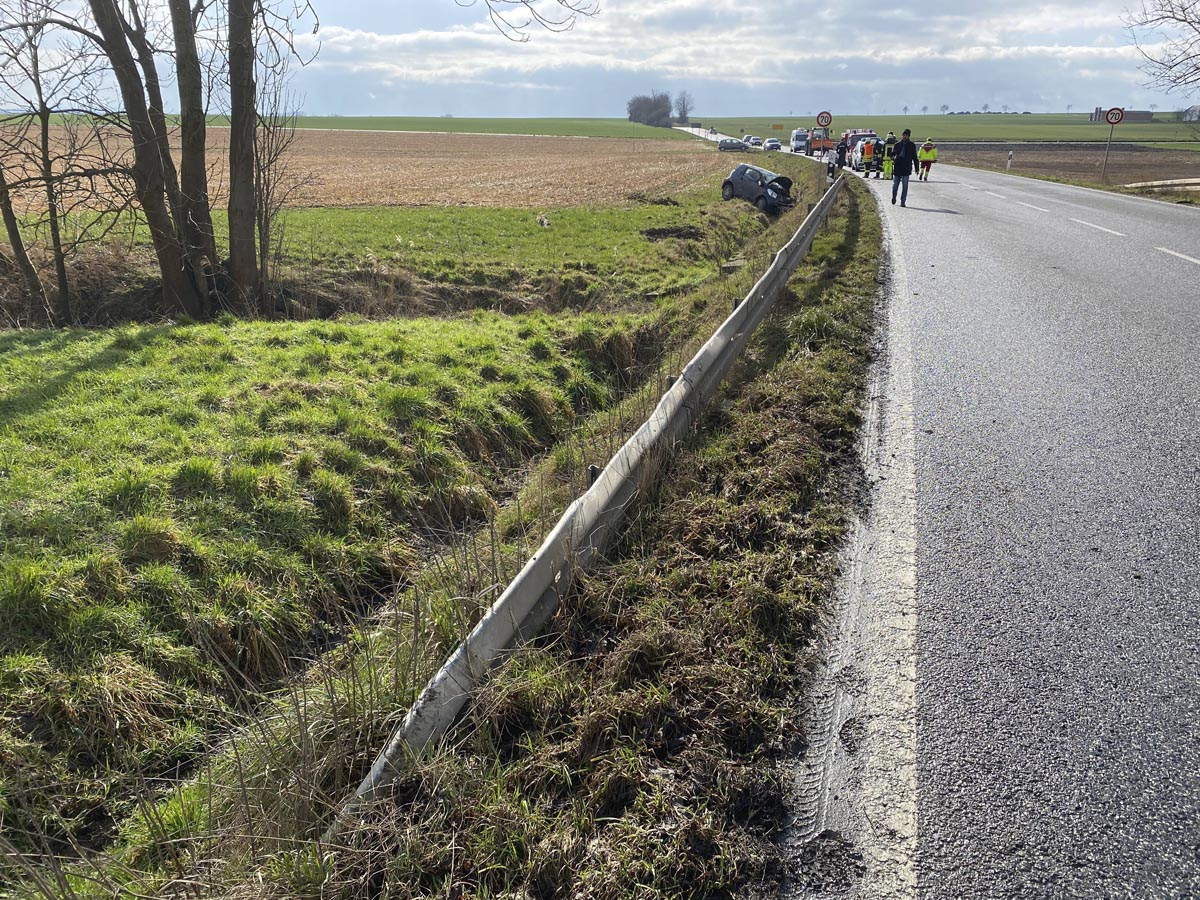 Der junge Mann befuhr die Bundesstraße von Lohne in Richtung Fritzlar, als er kurz vor dem Abzweig nach Haddamar aus bislang ungeklärten Umständen nach links von der Fahrbahn abkam. Dabei hob er mit seinem Kleinwagen im Bereich einer ansteigenden Schutzplanke ab, querte dabei einen Wassergraben und flog insgesamt 40 Meter durch die Luft. Der erste Aufschlag kam nach rund 25 Metern, der zweite folgte nach 33 Metern bevor das Fahrzeug völlig zerstört nach rund 40 Metern auf einem Feld zum Stillstand kam. Ersthelfer eilten dem Mann zu Hilfe und alarmierten die Rettungskräfte. Da zunächst von einer eingeklemmten Person ausgegangen wurde, was sich im Verlauf nicht bestätigte, wurde neben dem Rettungsdienst auch die Feuerwehr alarmiert.