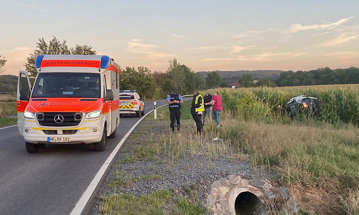Nach ersten Erkenntnissen war die junge Frau von Nassenerfurth in Richtung Dillich unterwegs. Sie geriet im Bereich einer Brücke von der Fahrbahn ab. Das Bauwerk wirkte offenbar wie eine Rampe. Die Frielendorferin hob mit ihrem Fahrzeug vollständig ab und landete wieder auf der Straße. Rund 200 Meter weiter schleuderte der Pkw von der Straße, überfuhr einen Leitpfosten, durchfuhr den Straßengraben und überschlug sich dann mehrfach. Das Fahrzeug kam beschädigt auf der Seite liegend in einem Maisfeld zum Stillstand.