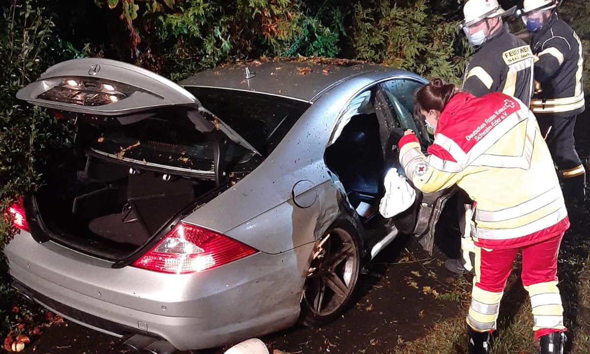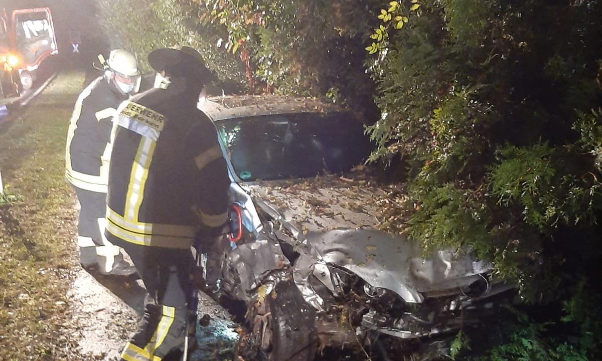 Alarmierte Feuerwehrleute (14) sicherten die Unfallstelle ab, öffneten Teile des Autos mit hydraulischen Geräten und stellten den Brandschutz sicher. Mit Hilfe einer Wärmebildkamera suchten sie die nähere Umgebung nach möglichen Fahrzeuginsassen ab. Im Anschluss an die Bergungsarbeiten wurden die Bäume zurückgeschnitten, die auf den Weg ragten, Trümmer und ausgelaufene Betriebsstoffe mussten aufgenommen und entfernt werden.