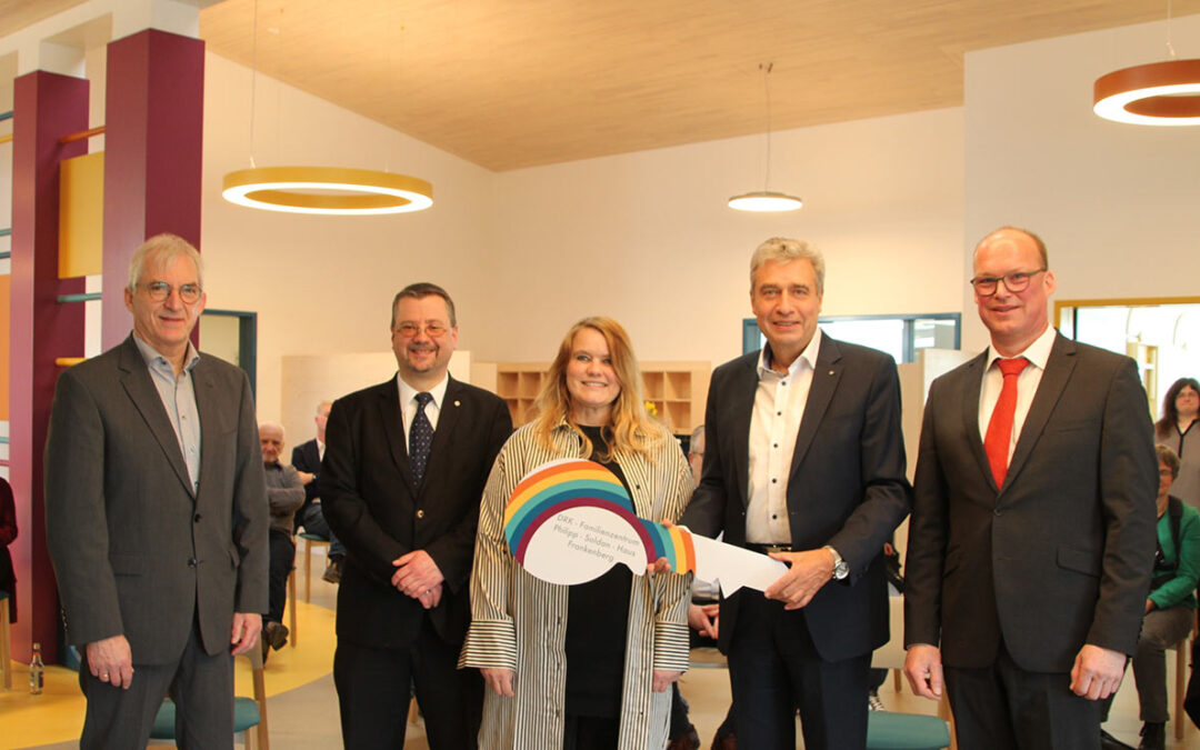 FRANKENBERG (pm/Stadt Frankenberg). Frankenbergs Bürgermeister Rüdiger Heß hat mit der offiziellen Schlüsselübergabe an DRK-Geschäftsführer Christian Peter und die neue Leiterin Silke Ulbrich das neue Familienzentrum Philipp Soldan an der Marburger Straße eingeweiht.