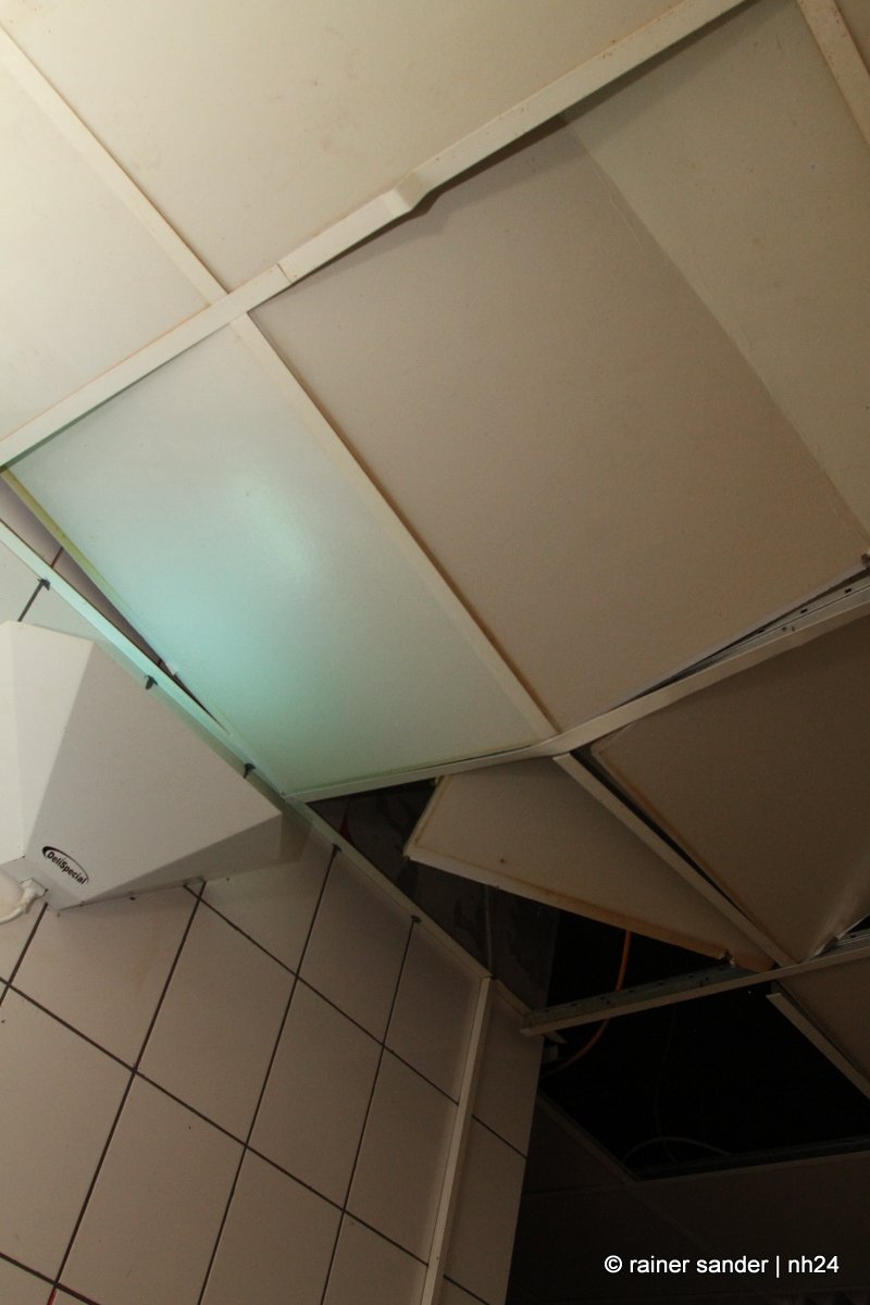 - Die beschädigte Deckenverkleidung © Foto: Rainer Sander