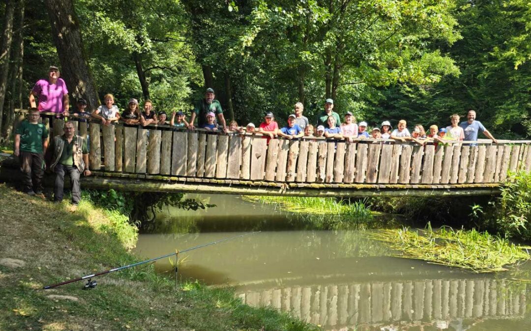 Zum Ende der Woche trafen sich 25 Kinder an der Angel- und Jagdhütte Willingshausen. Während die eine Gruppe im Wald beim Hüttenbau aktiv war, probierte die andere das Angeln aus. Auch wenn der Fang bescheiden blieb, war die Begeisterung groß.