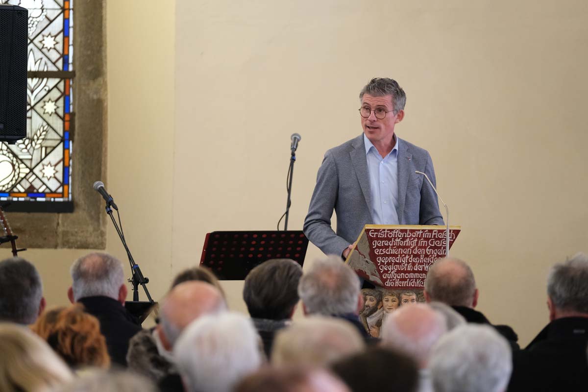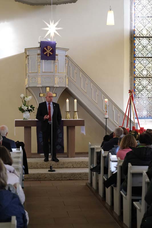 Jürgen Kaufmann, Erster Kreisbeigeordneter des Schwalm-Eder-Kreises, überbrachte anschließend ein herzliches Grußwort und unterstreicht die Bedeutung dieses festlichen Anlasses für die Region. Die vielen Lücken in den Sitzreihen führte Kaufmann auf die aktuelle Infektionswelle zurück, die Gäste fernblieben ließ.