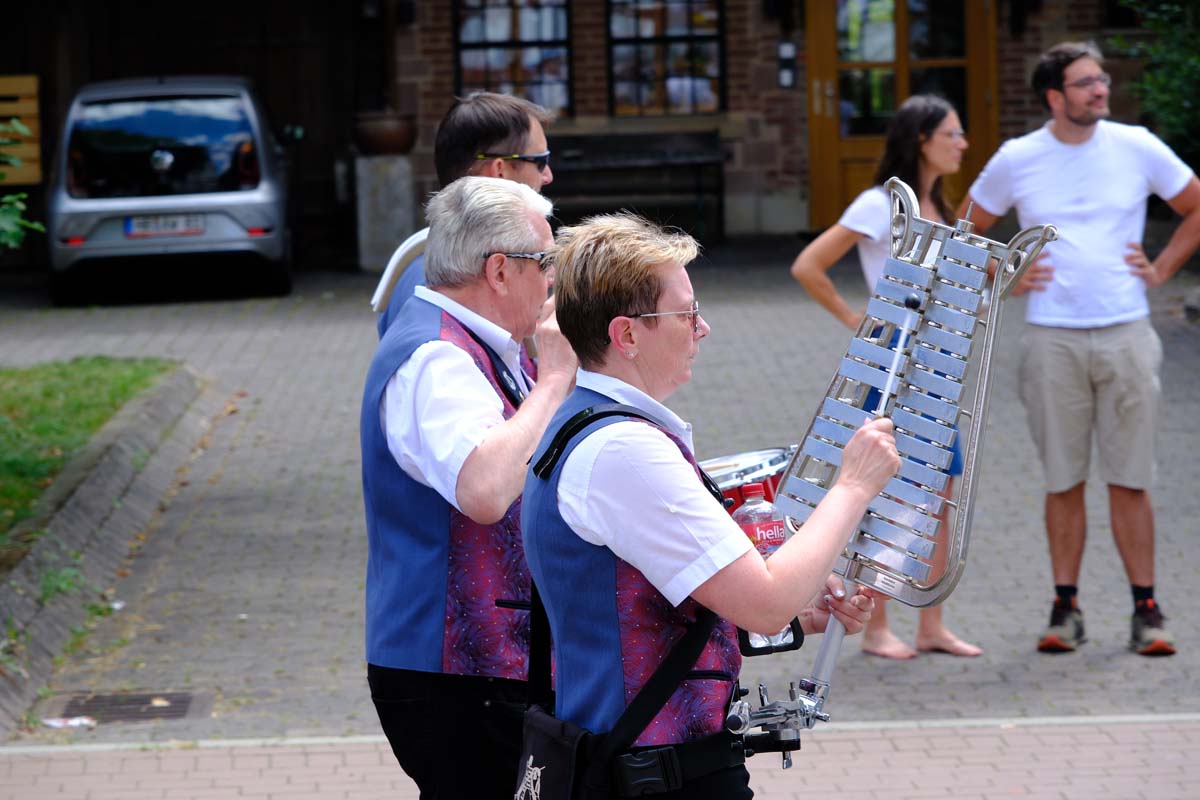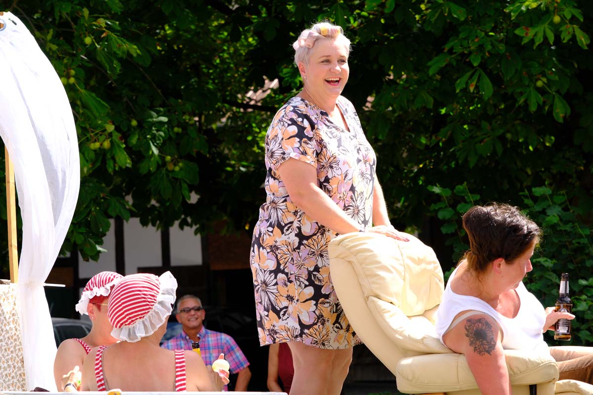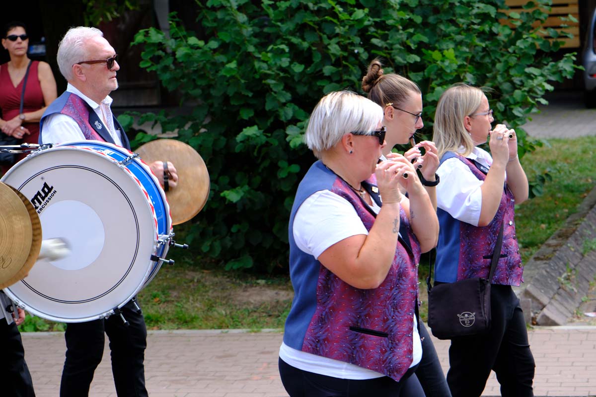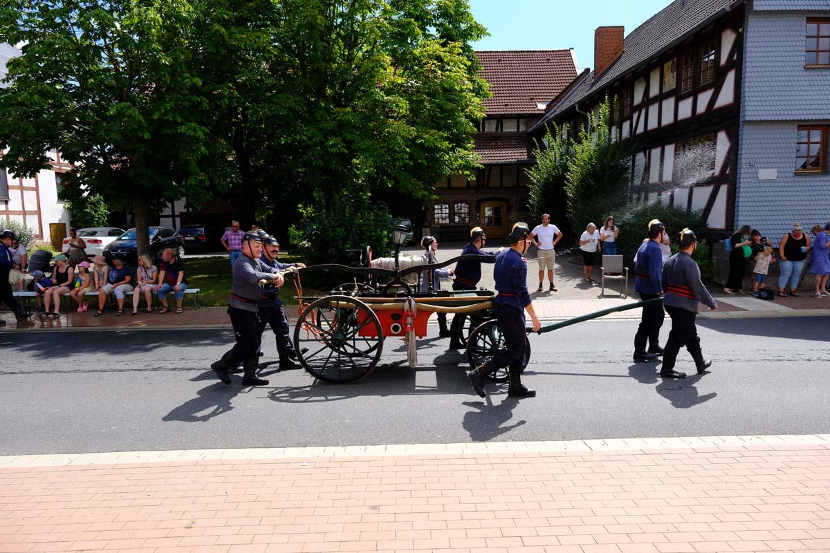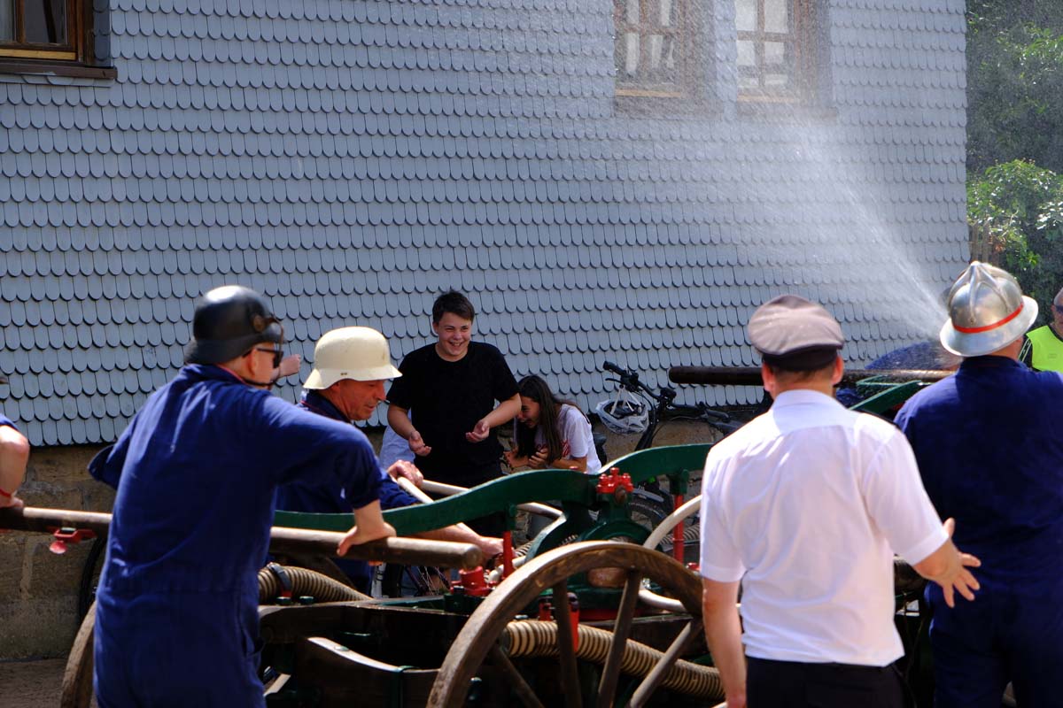 Bei hochsommerlichen Temperaturen suchten sich die Zuschauer entlang der Straßen schattige Plätze, um den Umzug in vollen Zügen genießen zu können. Für Abkühlung sorgte die Feuerwehr, die die Zuschauer mit Wasser bespritzte. (wal)