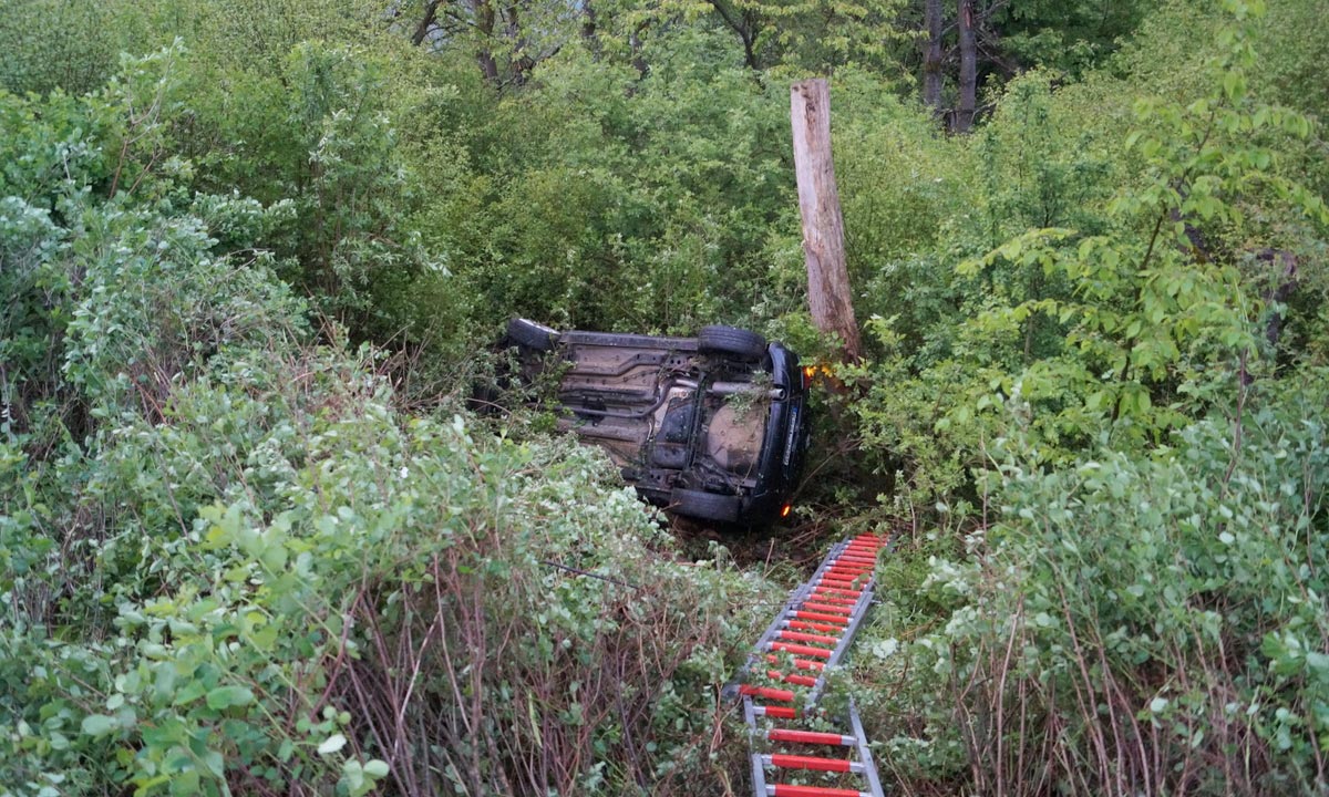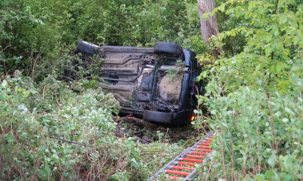 Sie verlor aus noch unklarer Ursache nach einer scharfen Rechtskurve die Kontrolle über ihren Kleinwagen, kam auf die Bankette und befuhr ca. 30 Meter einen Grünstreifen, wo sie anschließend einen 6 Meter tiefen Abhang herunterstürzte. Infolgedessen überschlug sich der Opel Corsa und kam auf der Beifahrerseite zum Liegen. Die junge Frau wurde in ihrem Fahrzeug eingeschlossen und konnte sich selbst nicht mehr aus dem Pkw befreien. Den Notruf konnte sie noch selbst absetzen.