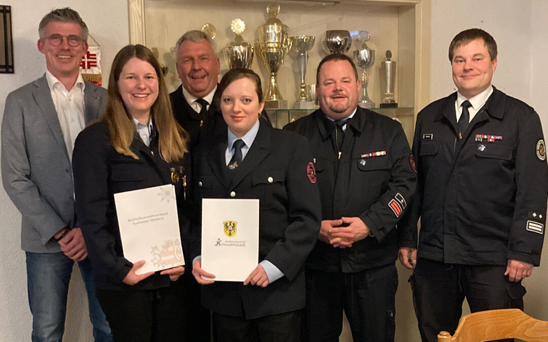 Im Rahmen der Versammlung fanden auch Beförderungen und Ehrungen statt: Juliane Krutsch wurde zur Feuerwehrfrau befördert, während Sabine Wilhelm, die langjährige ehemalige Jugendfeuerwehrwartin, die Ehrenurkunde des Kurhessisch-Waldeckschen Feuerwehrverbandes sowie die St.-Floriansmedaille in Bronze erhielt. Darüber hinaus ernannte der Verein Karl Schenk und Hans Dörinkel in ihrer Abwesenheit zu Ehrenmitgliedern.