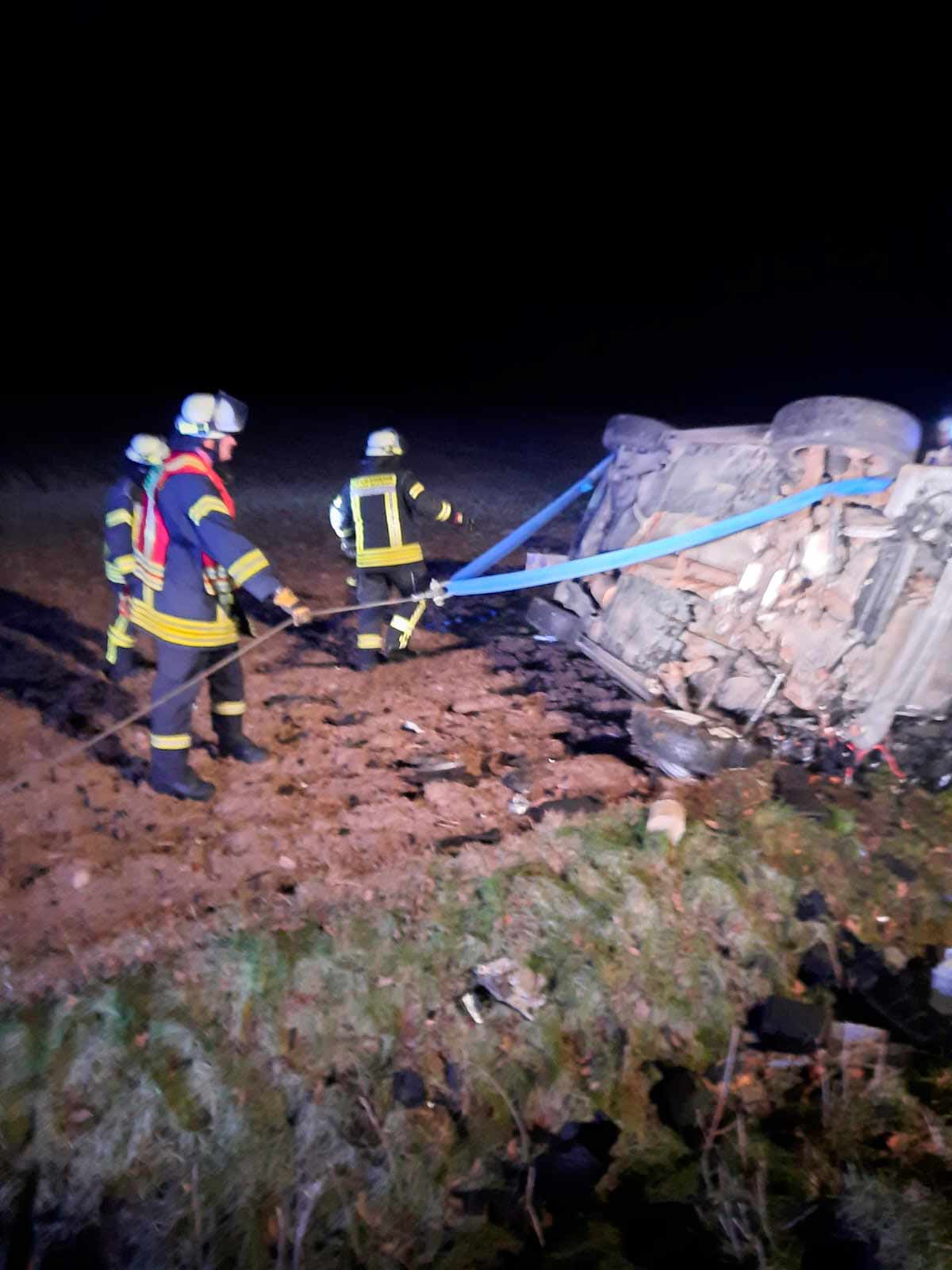 Feuerwehrleute leuchteten zudem den Landeplatz für den Hubschrauber aus und stellten den Pkw wieder auf die Räder.