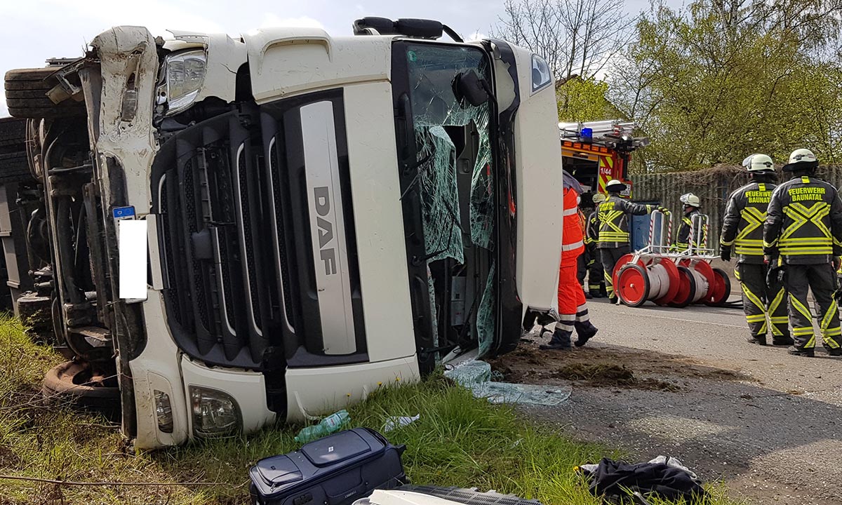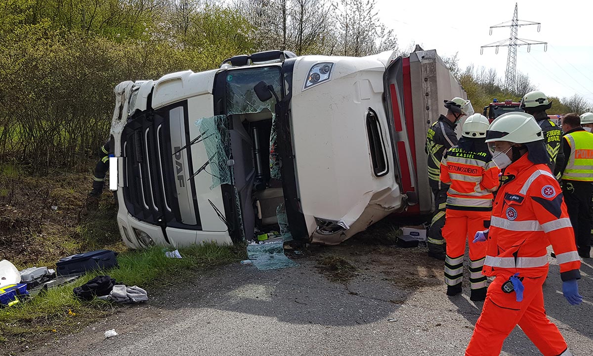 Feuerwehrleute mussten den eingeschlossenen 42 Jahre alten Fahrer aus der Ukraine aus seiner Kabine befreien, berichtet Sebastian Milas von der Feuerwehr Baunatal.
