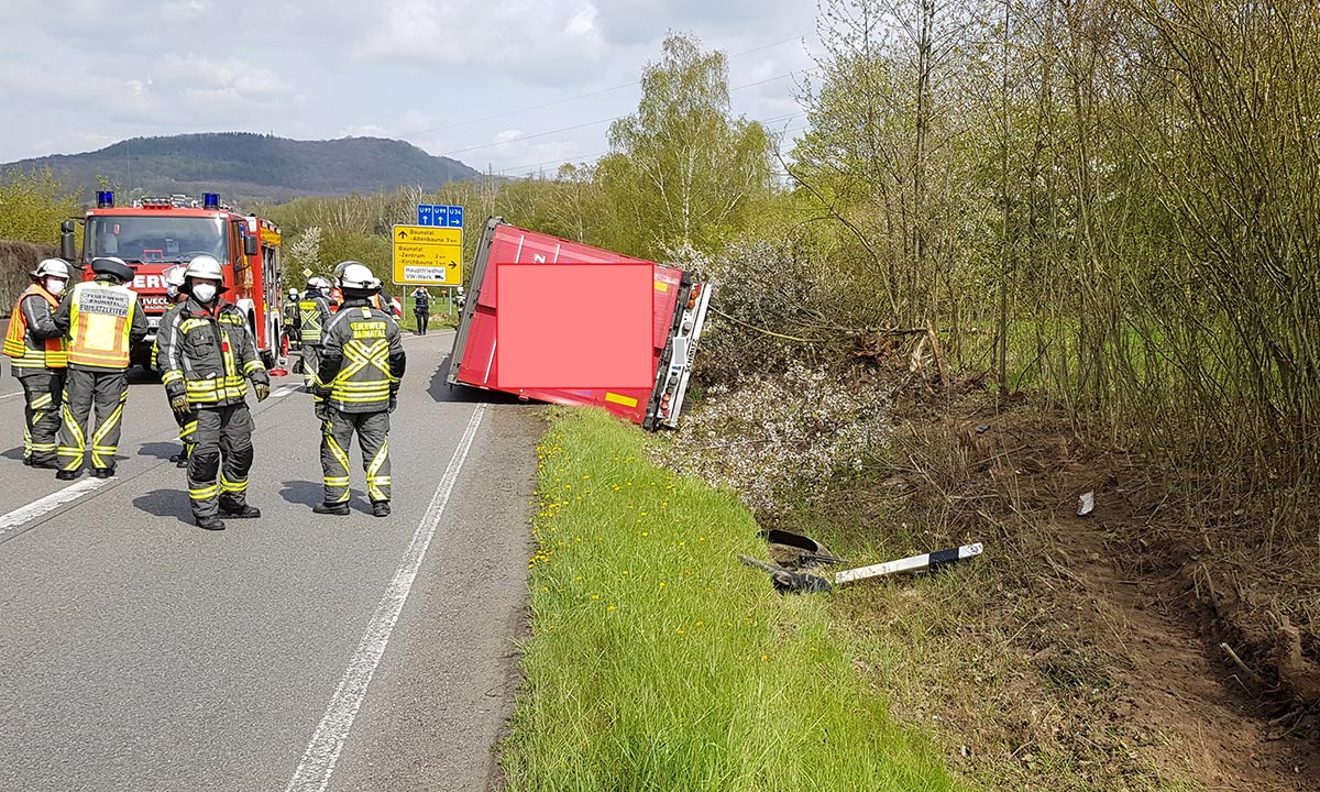 BAUNATAL. Auf der Landesstraße zwischen der Zufahrt zur Ausfahrt A 49 (VW-Tor Süd) und dem Gewerbegebiet Kirchbauna ist am Montag gegen 10:40 Uhr ein Lkw auf die Bankette geraten und im Straßengraben auf die linke Seite gekippt.